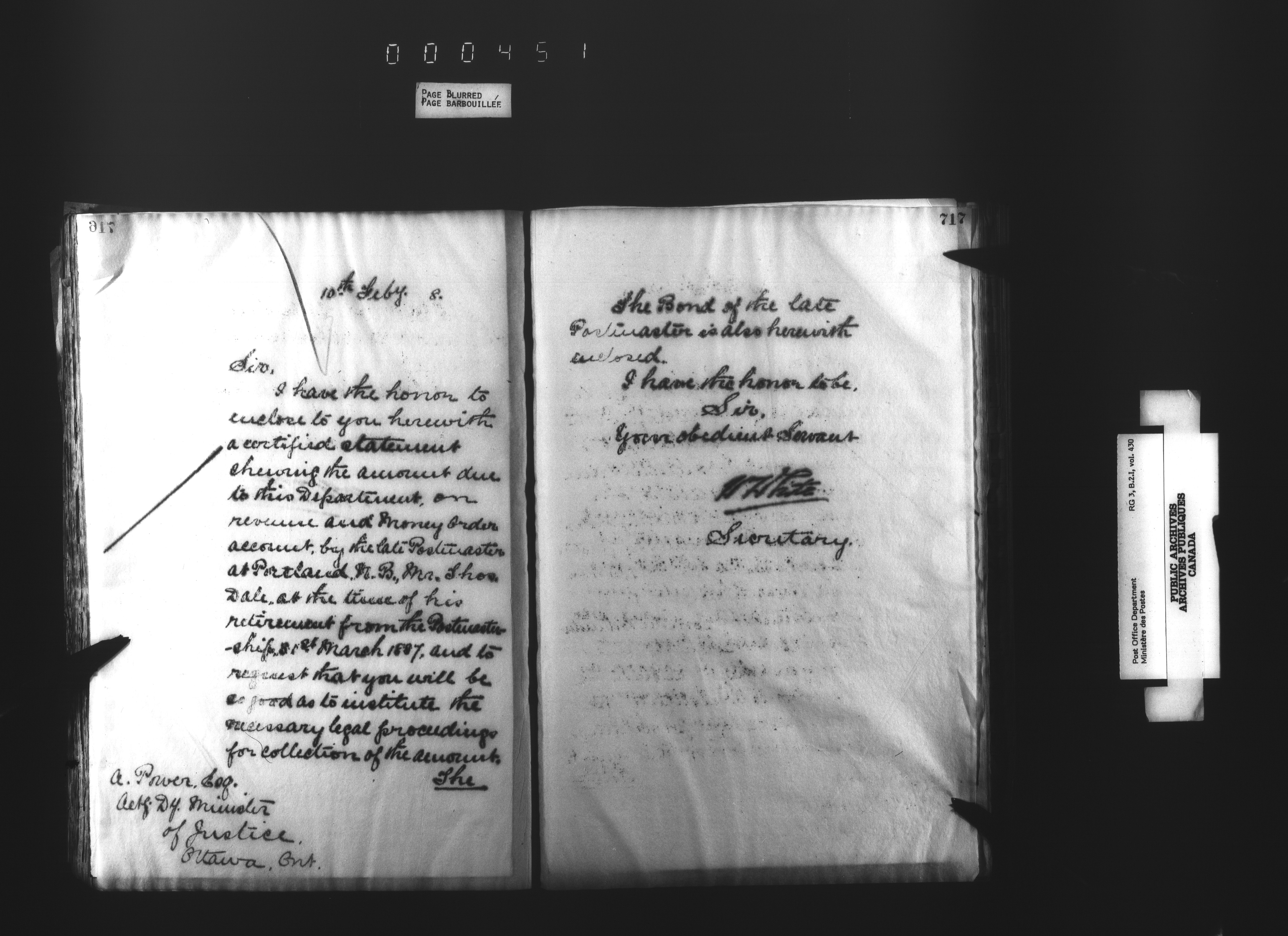 Records and general correspondence sent from the Postmaster General, 1851-1902 - 3898