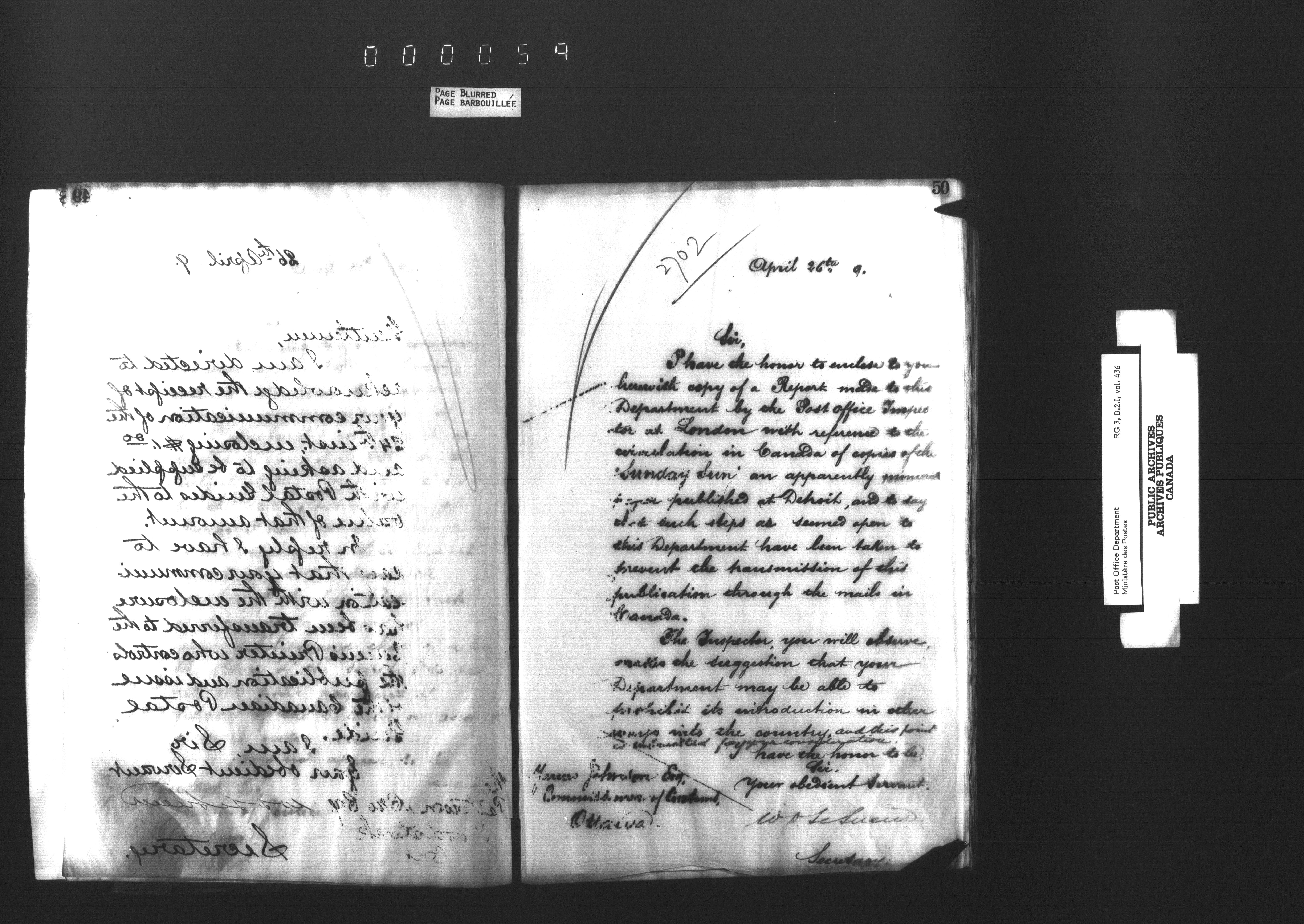 Records and general correspondence sent from the Postmaster General, 1851-1902 - 3901
