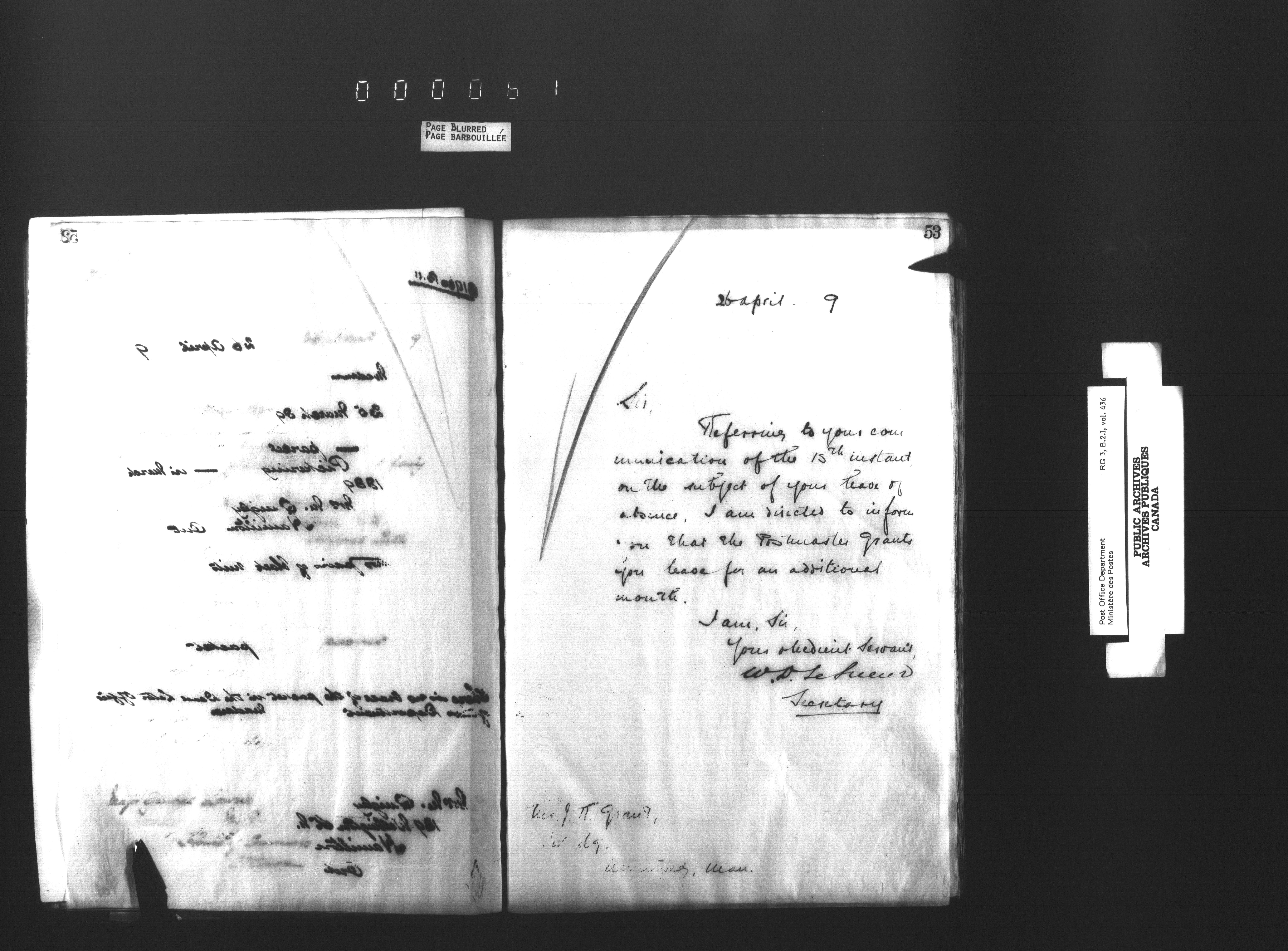 Records and general correspondence sent from the Postmaster General, 1851-1902 - 3901