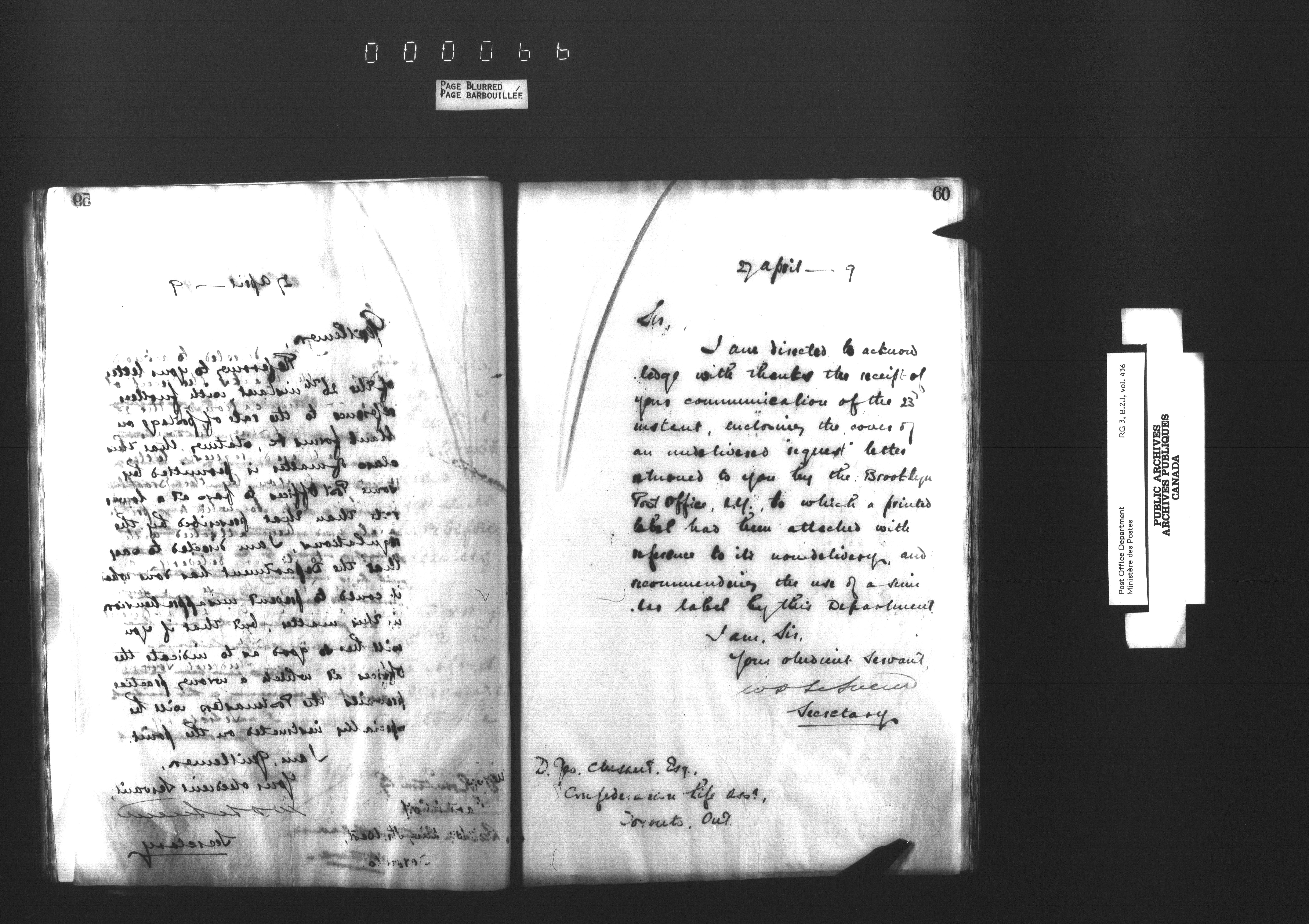 Records and general correspondence sent from the Postmaster General, 1851-1902 - 3901