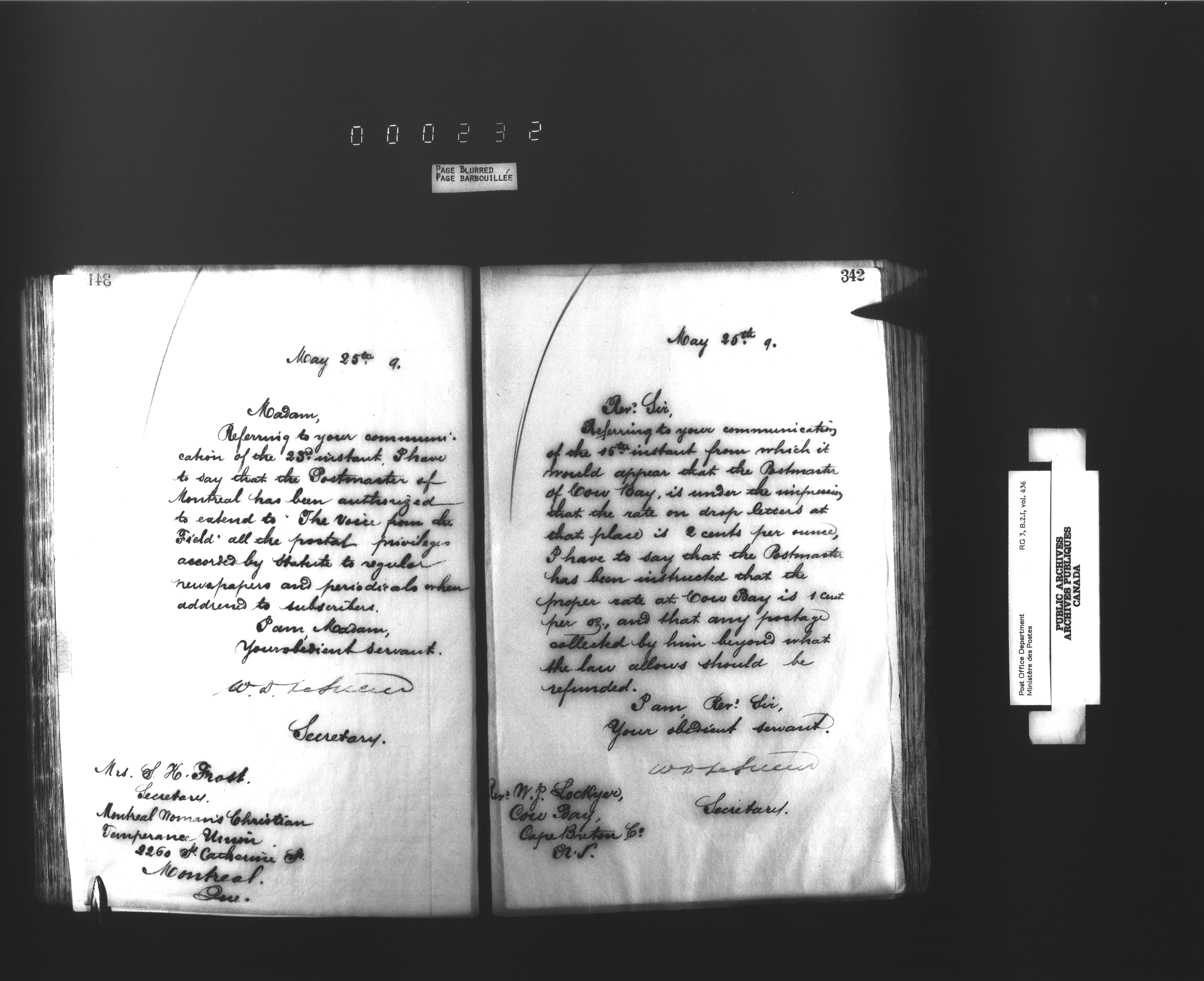 Records and general correspondence sent from the Postmaster General, 1851-1902 - 3902