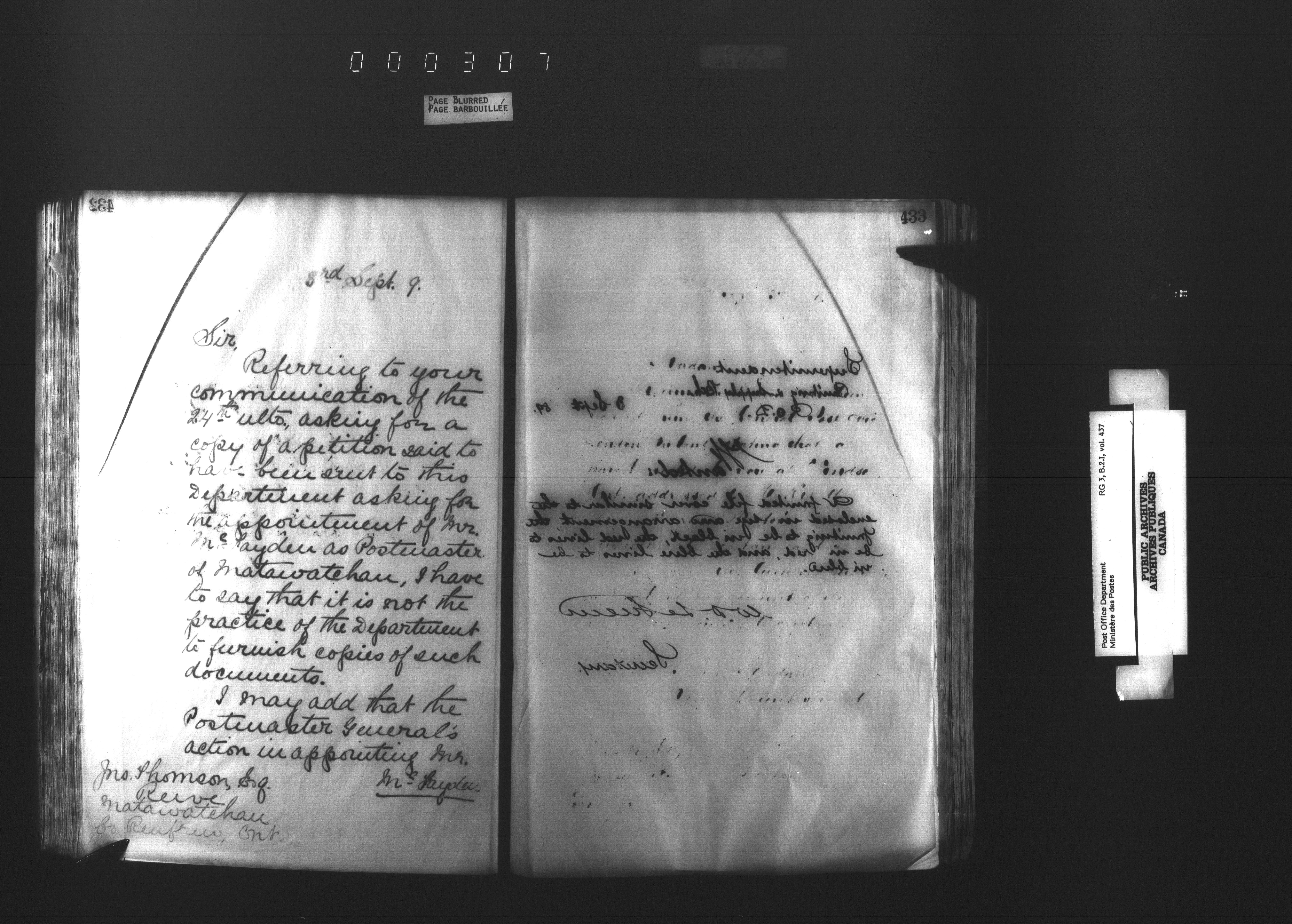 Records and general correspondence sent from the Postmaster General, 1851-1902 - 3903