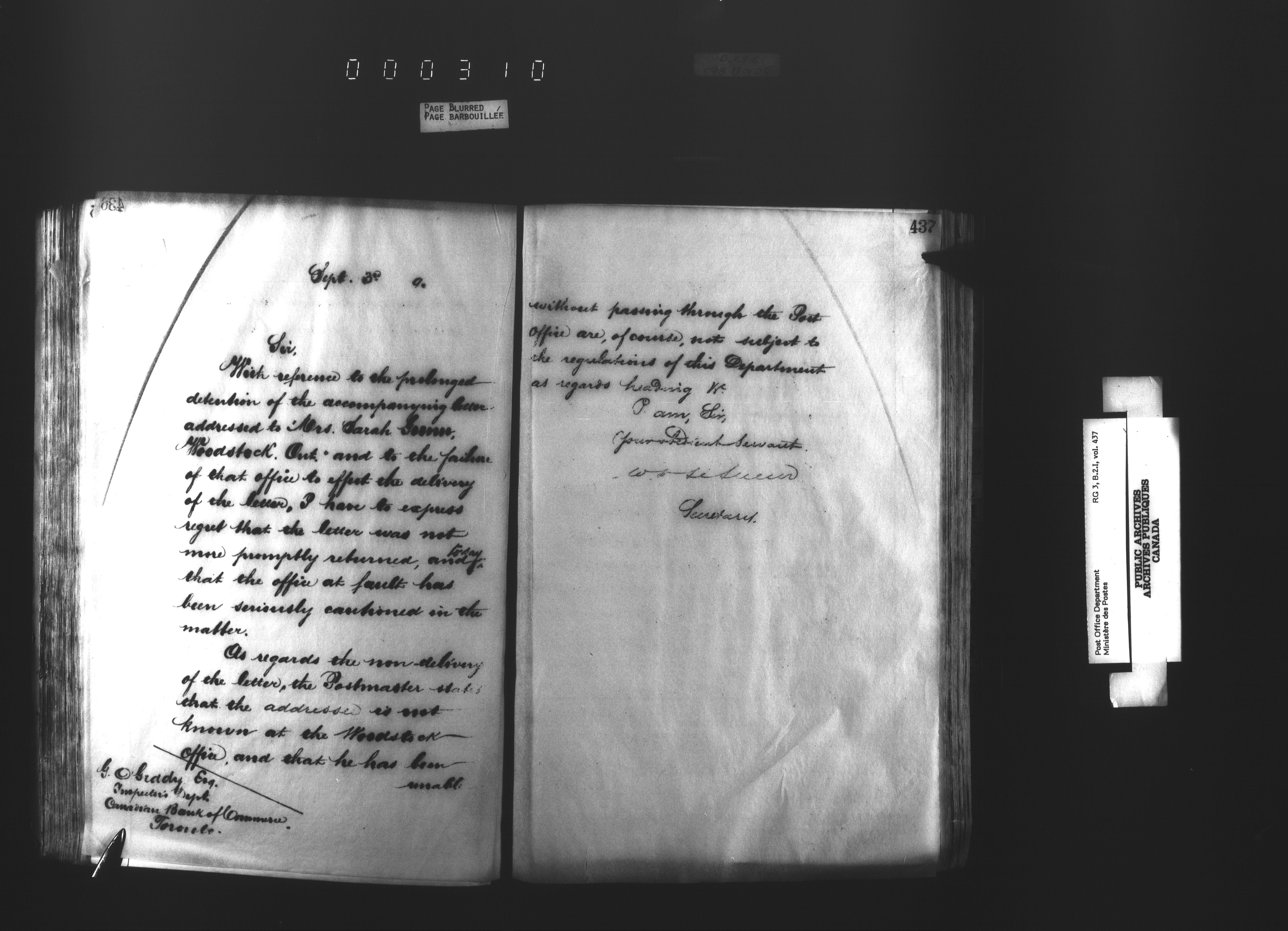 Records and general correspondence sent from the Postmaster General, 1851-1902 - 3903