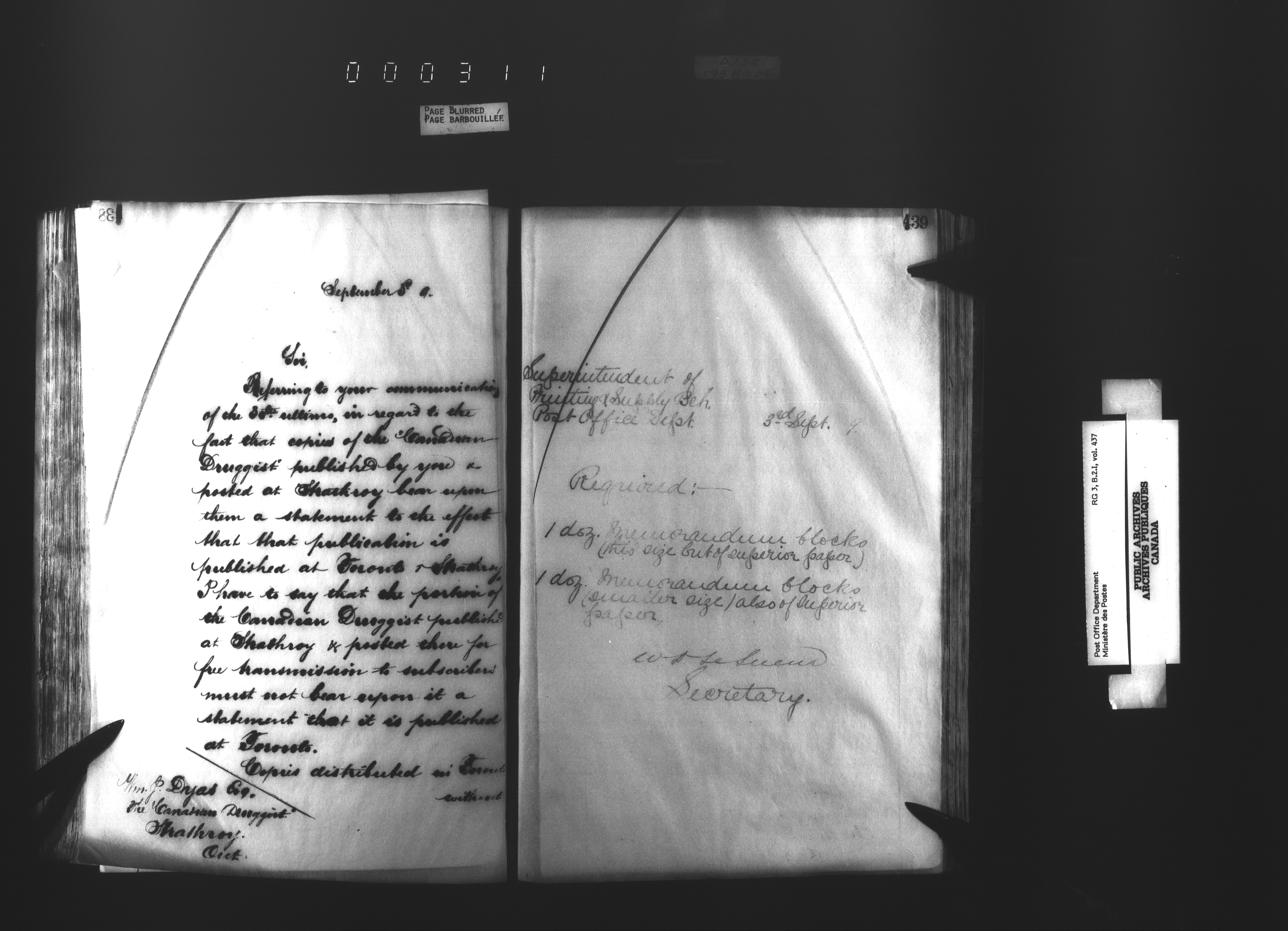 Records and general correspondence sent from the Postmaster General, 1851-1902 - 3903