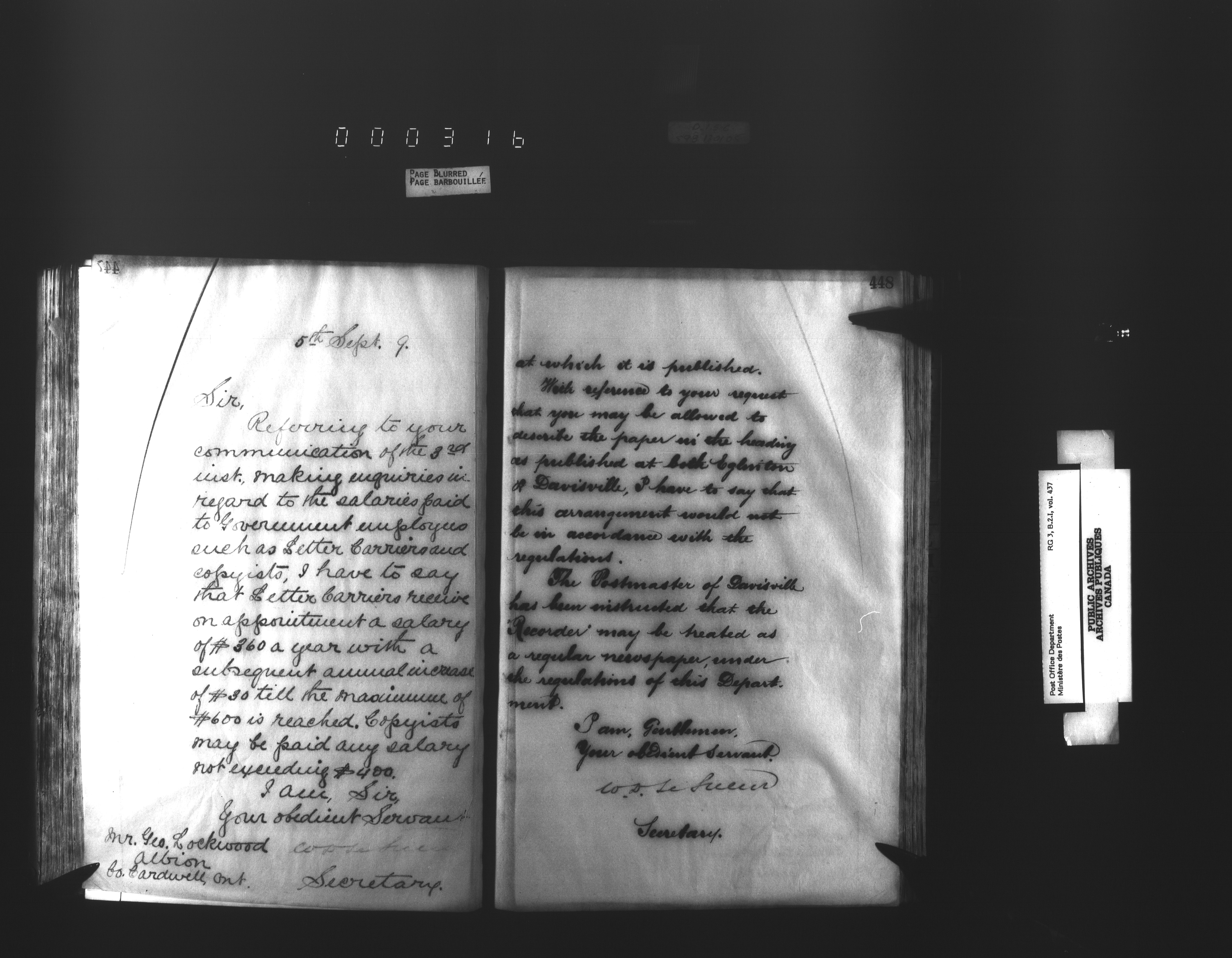 Records and general correspondence sent from the Postmaster General, 1851-1902 - 3903