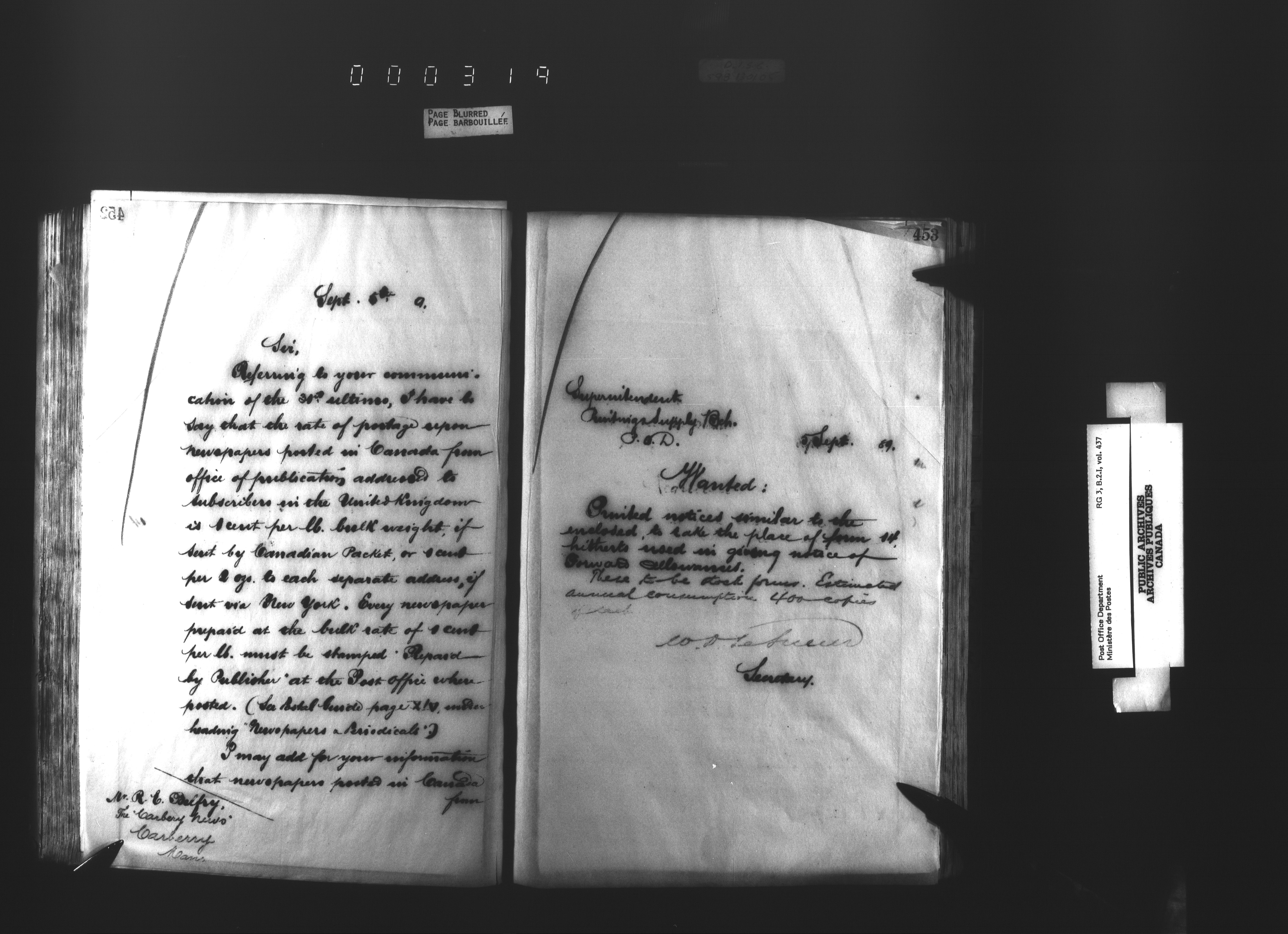 Records and general correspondence sent from the Postmaster General, 1851-1902 - 3903