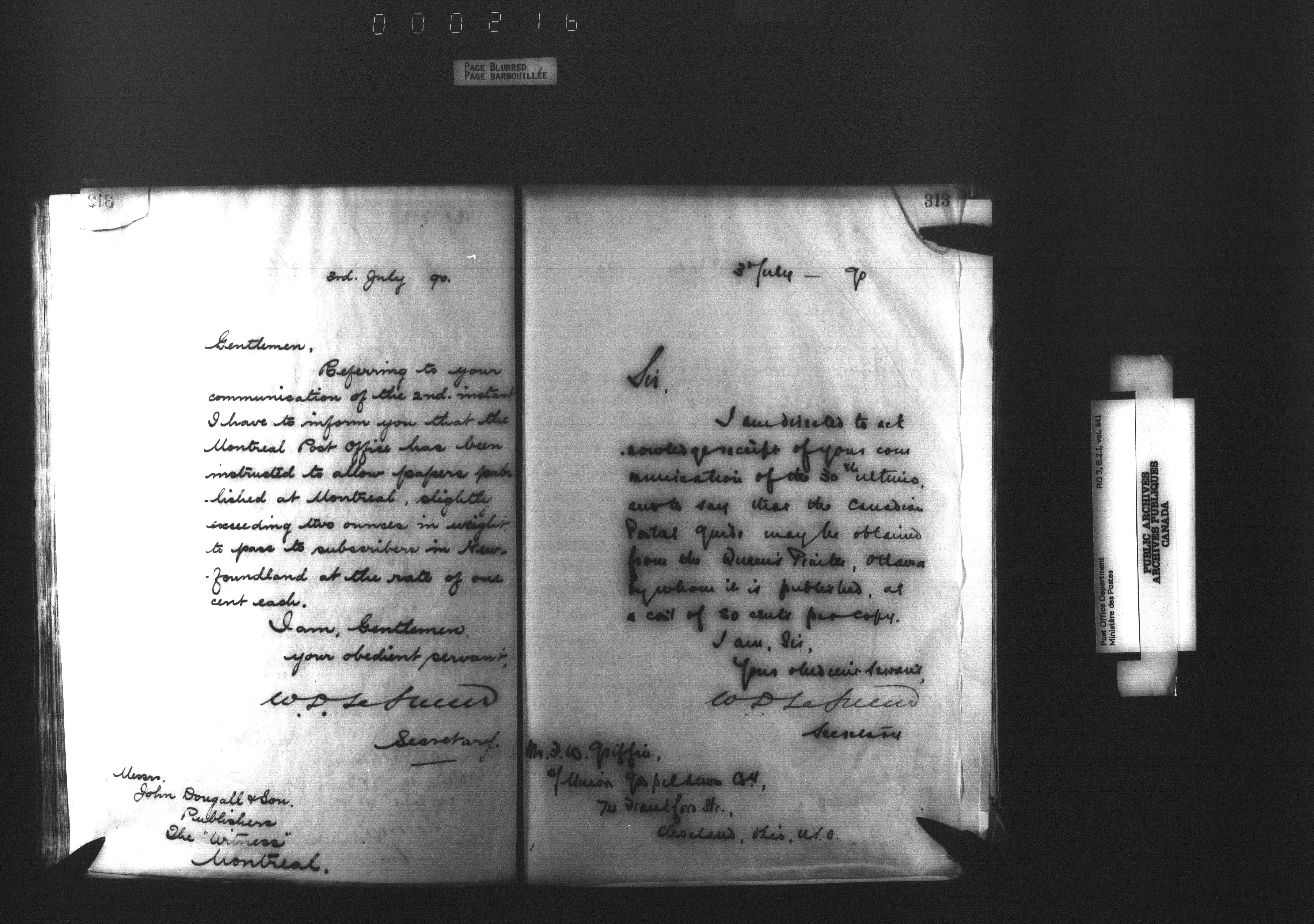 Records and general correspondence sent from the Postmaster General, 1851-1902 - 3905