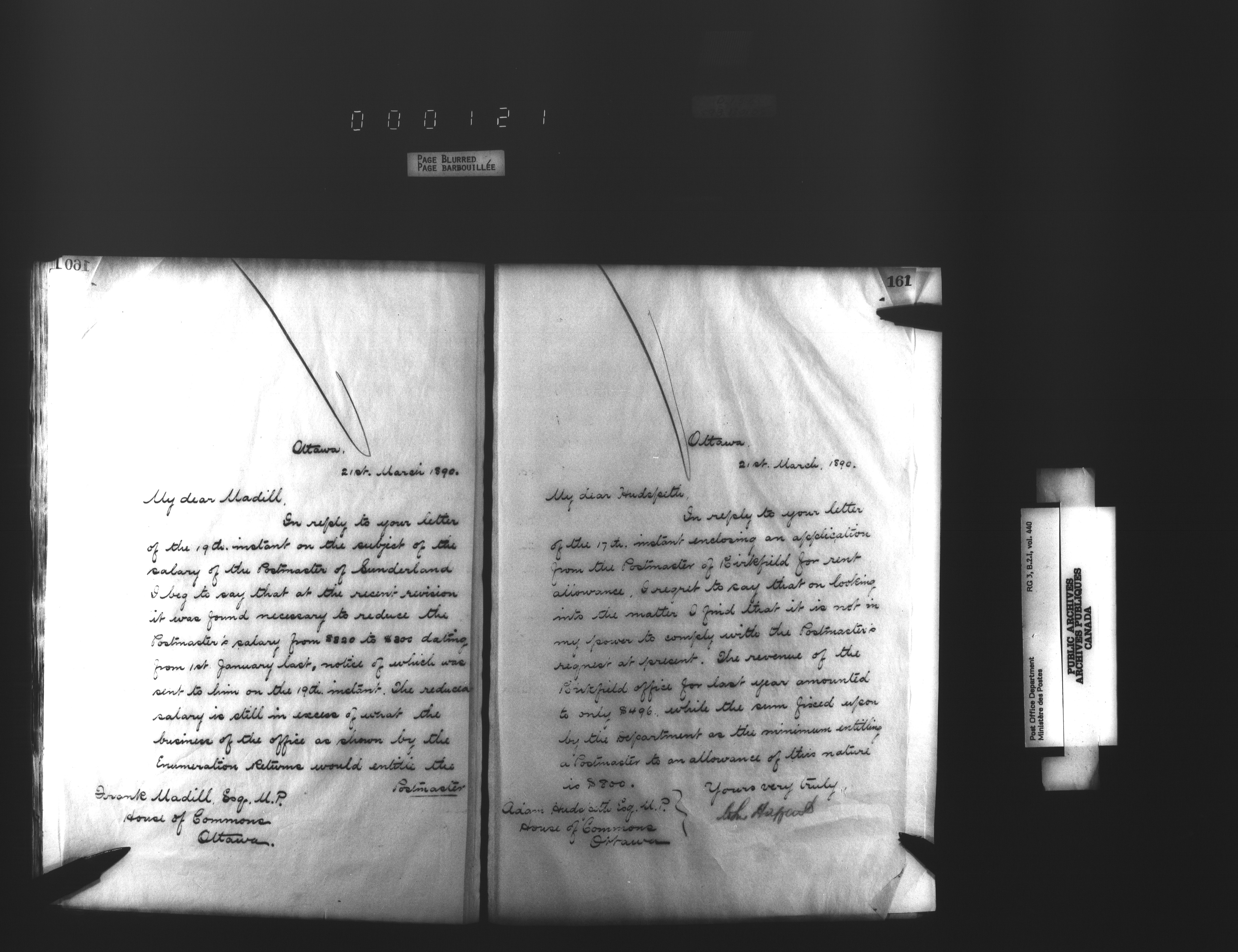 Records and general correspondence sent from the Postmaster General, 1851-1902 - 3905