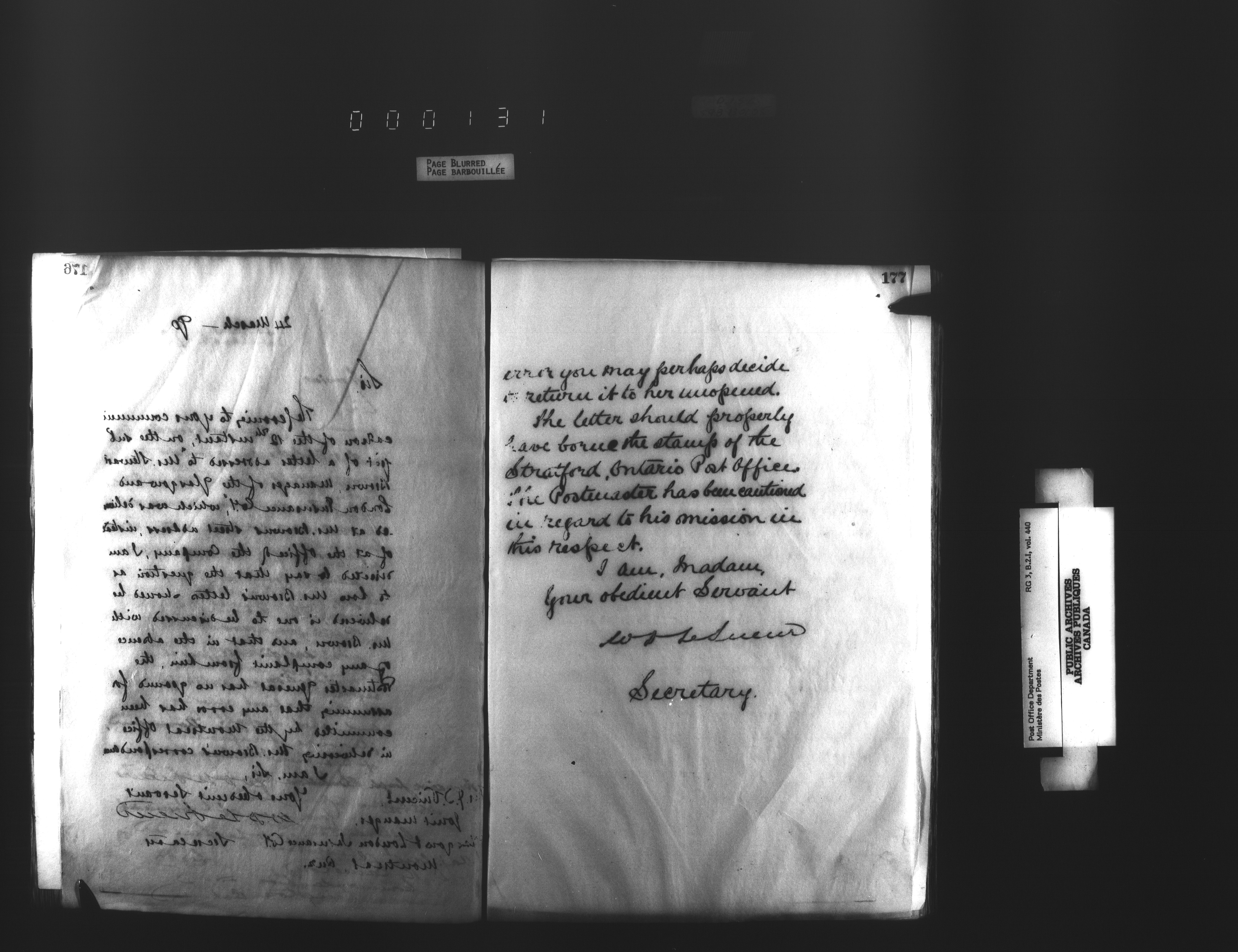Records and general correspondence sent from the Postmaster General, 1851-1902 - 3905