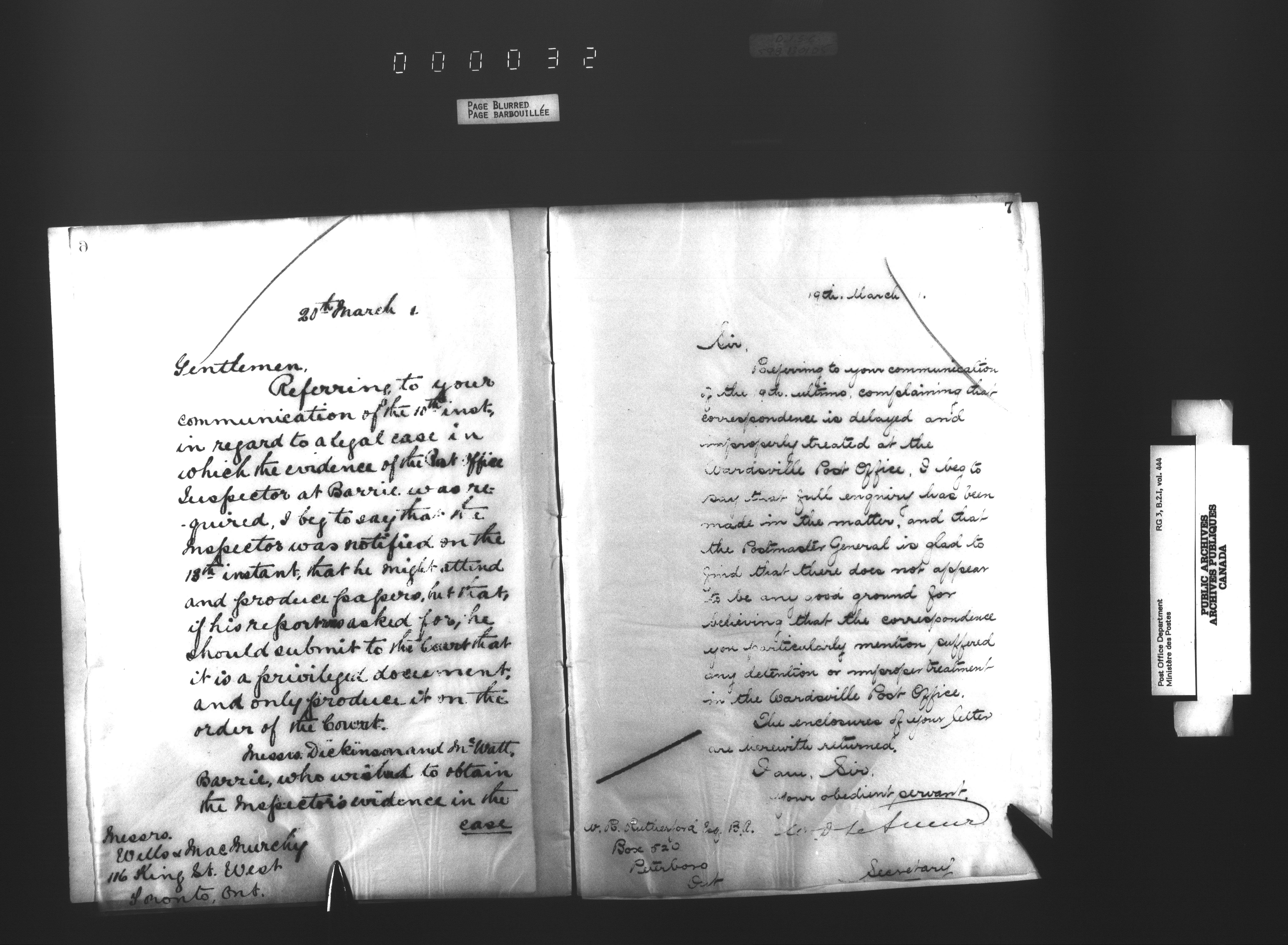 Records and general correspondence sent from the Postmaster General, 1851-1902 - 3907