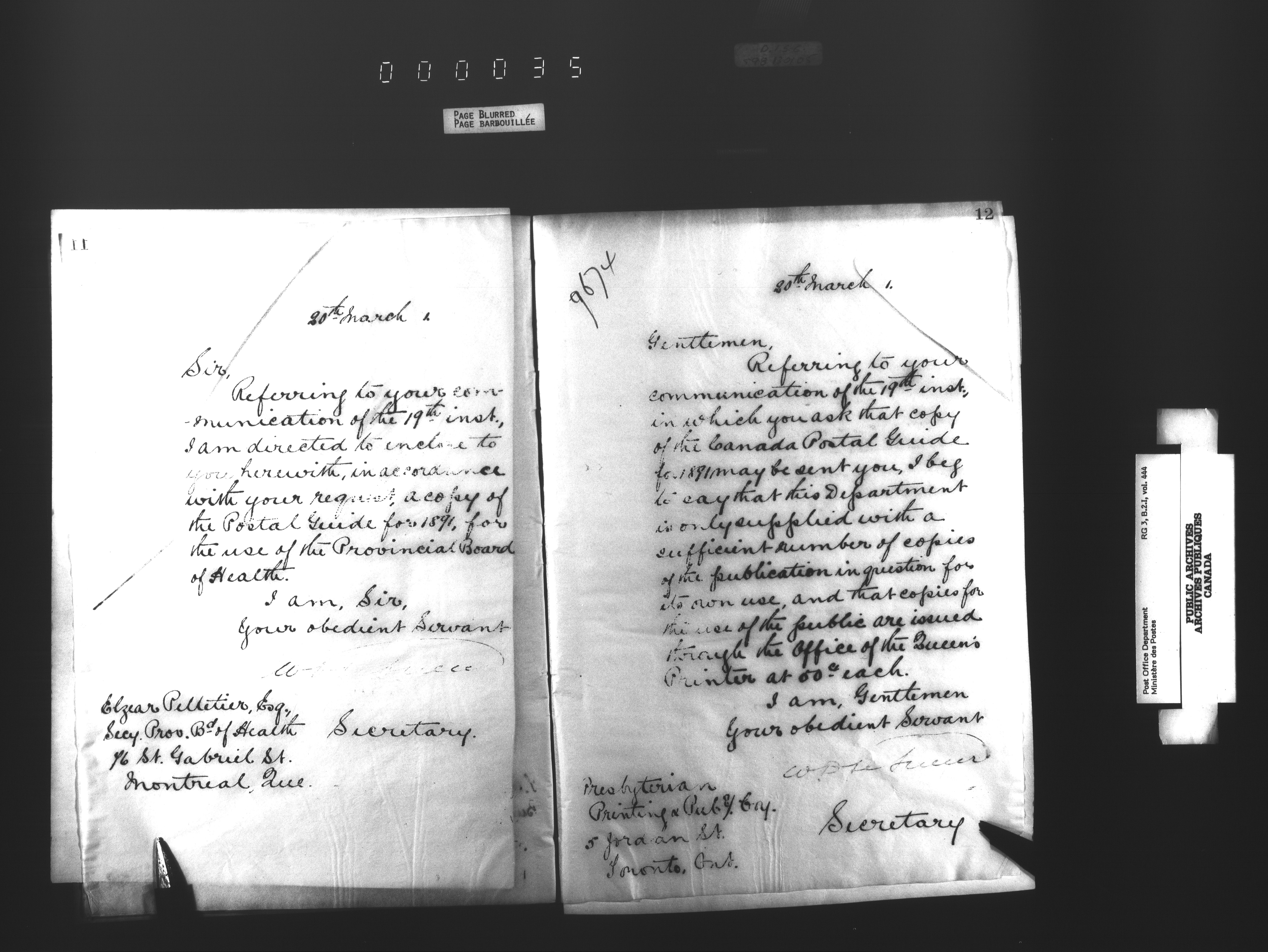 Records and general correspondence sent from the Postmaster General, 1851-1902 - 3907