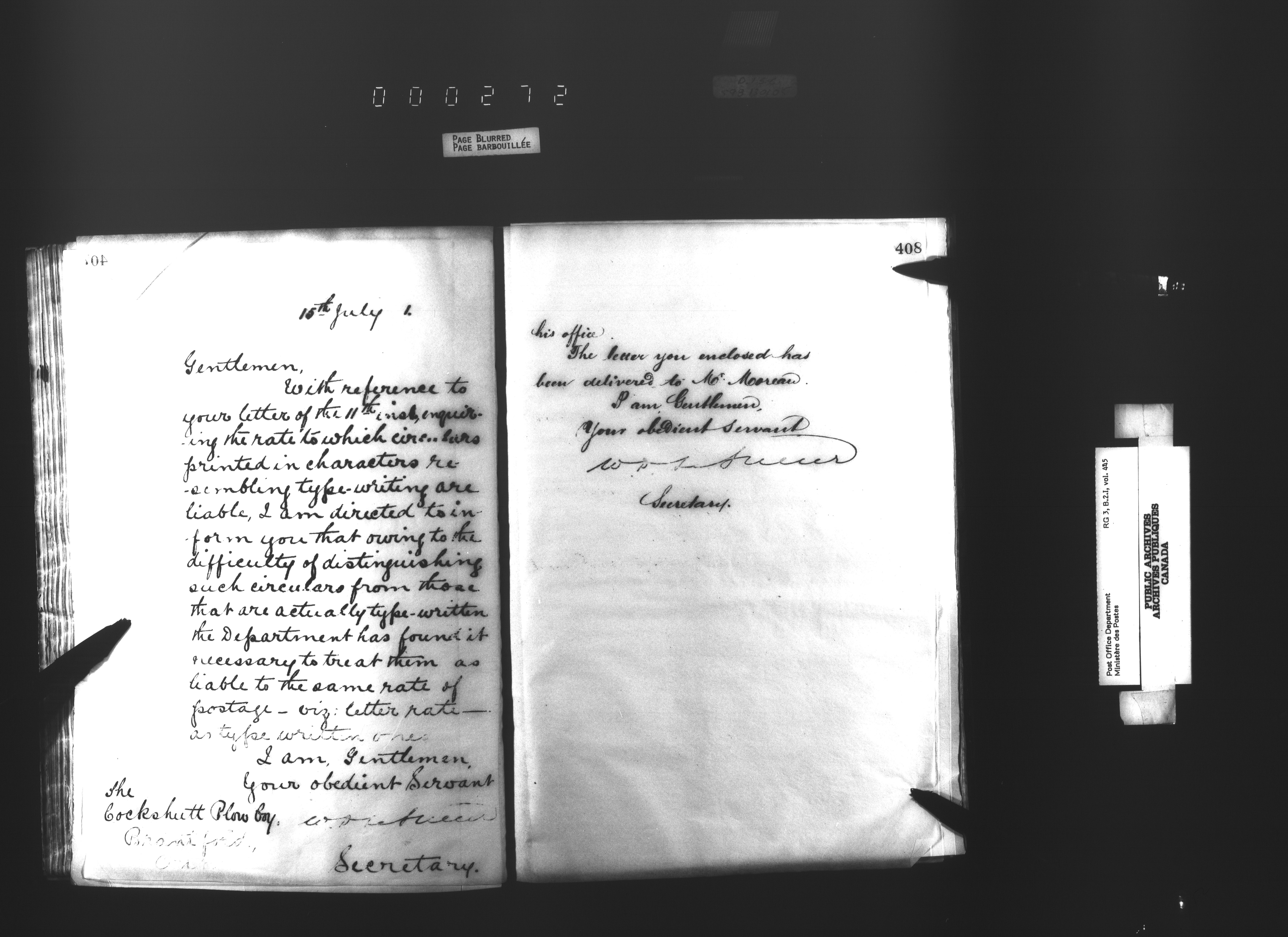 Records and general correspondence sent from the Postmaster General, 1851-1902 - 3909