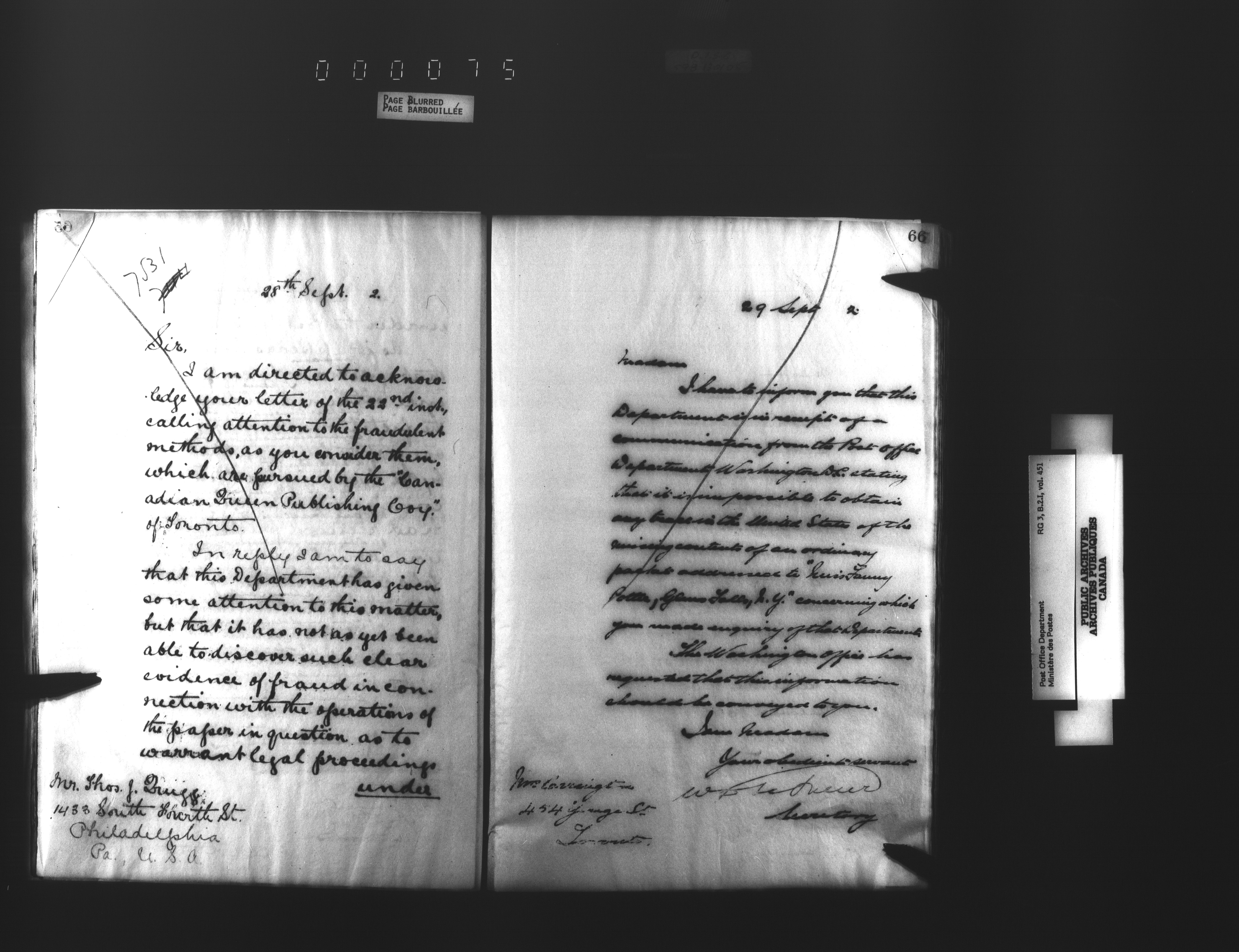 Records and general correspondence sent from the Postmaster General, 1851-1902 - 3913
