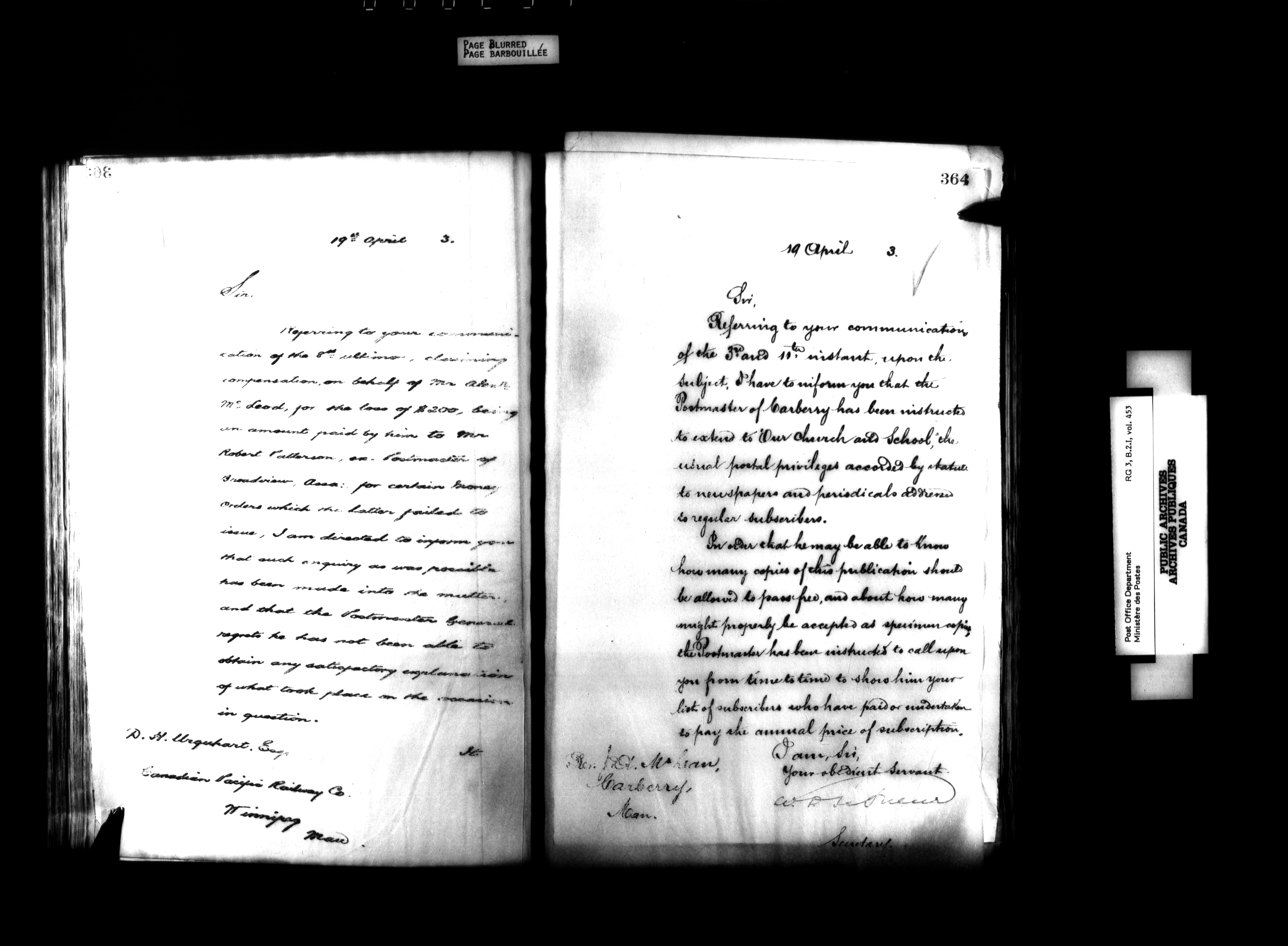 Records and general correspondence sent from the Postmaster General, 1851-1902 - 3914