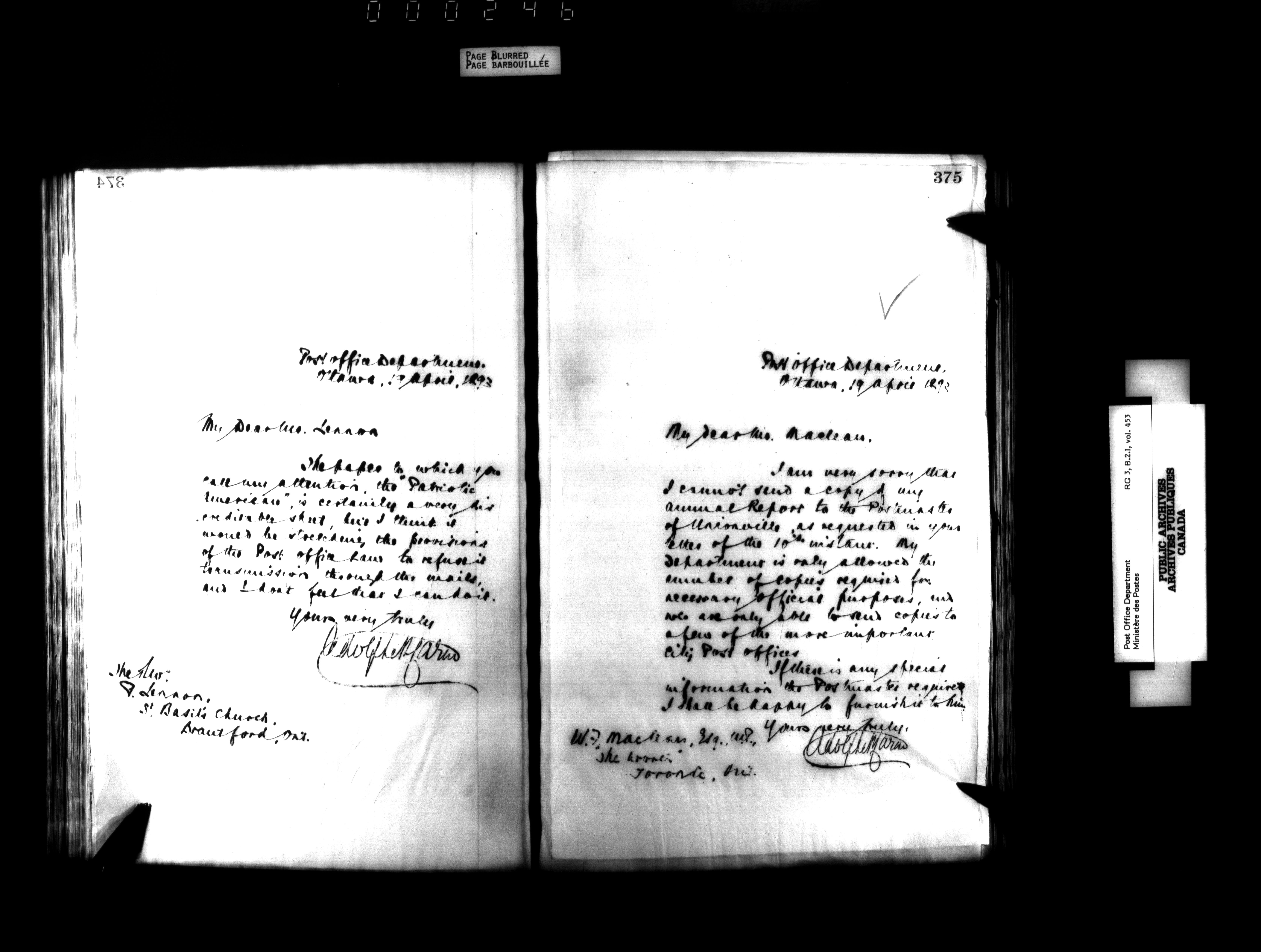 Records and general correspondence sent from the Postmaster General, 1851-1902 - 3914
