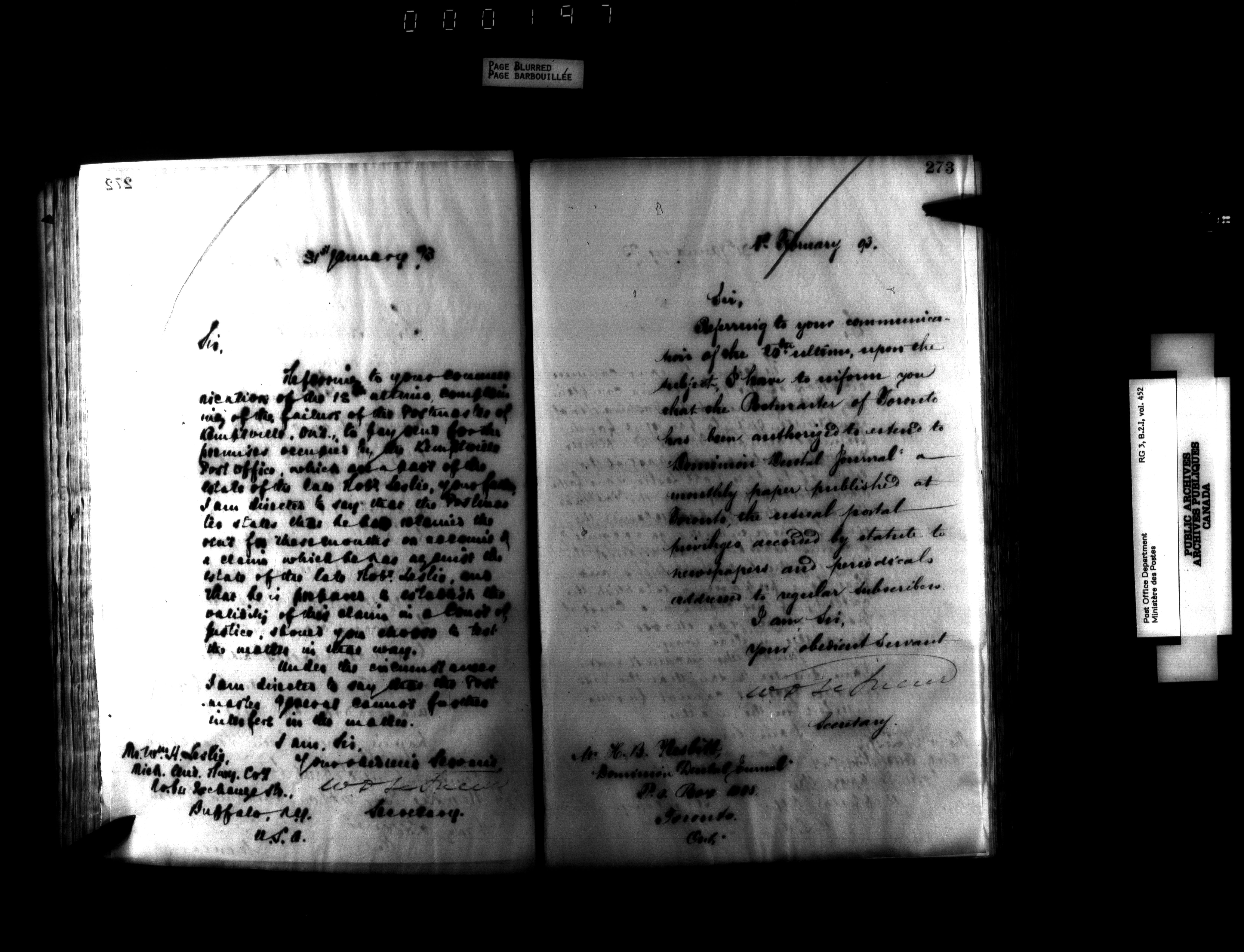 Records and general correspondence sent from the Postmaster General, 1851-1902 - 3914