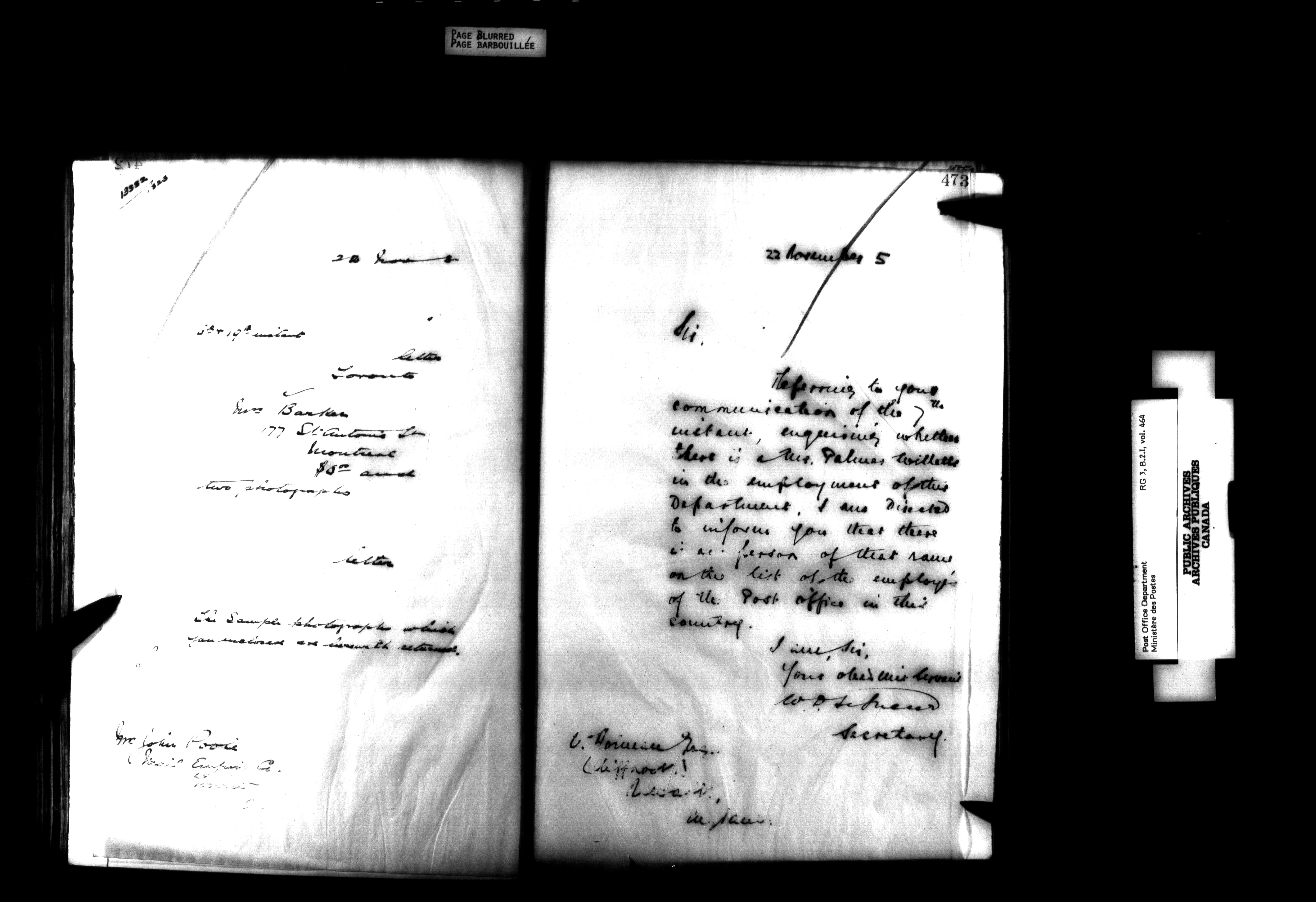 Records and general correspondence sent from the Postmaster General, 1851-1902 - 3922