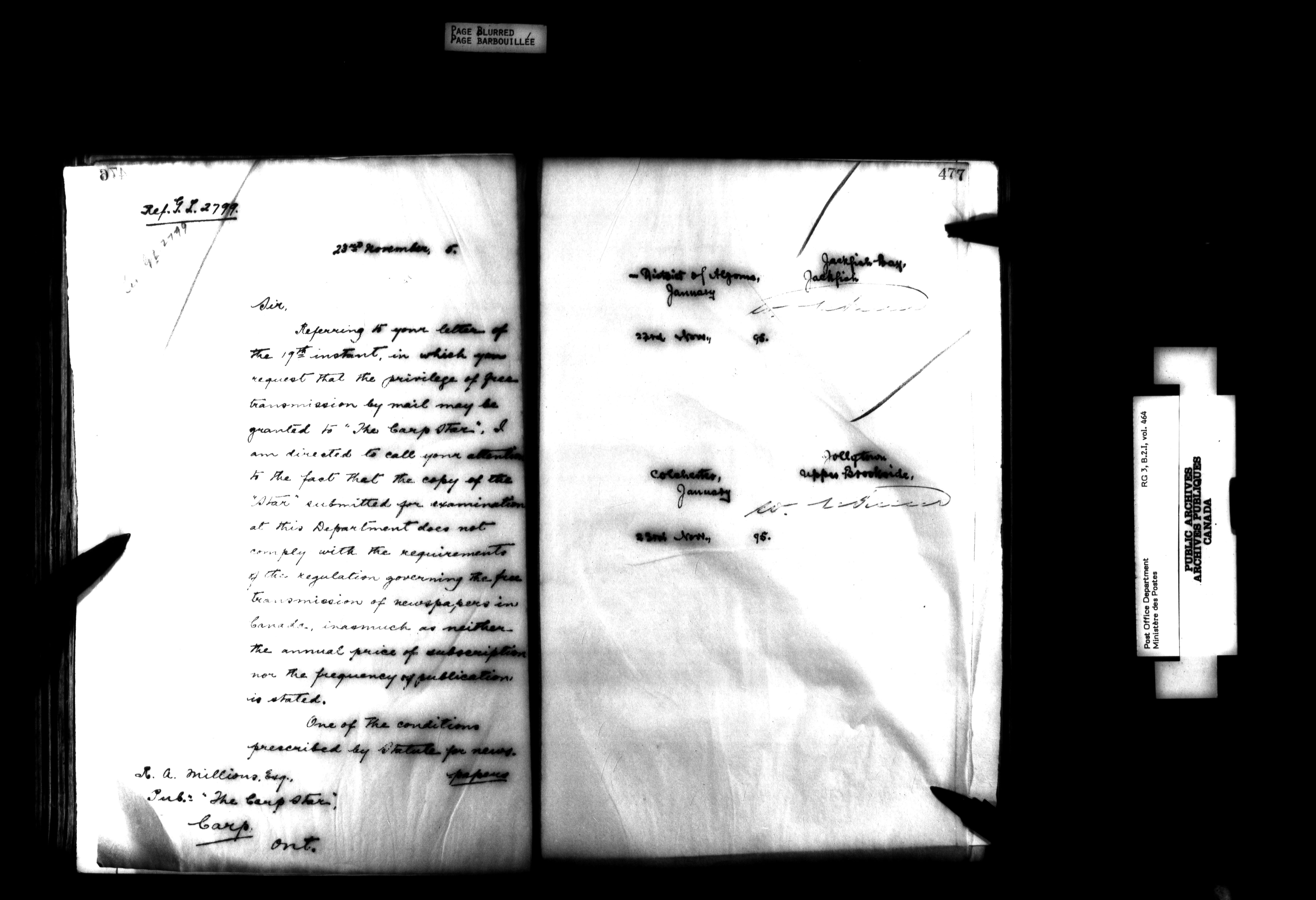 Records and general correspondence sent from the Postmaster General, 1851-1902 - 3922