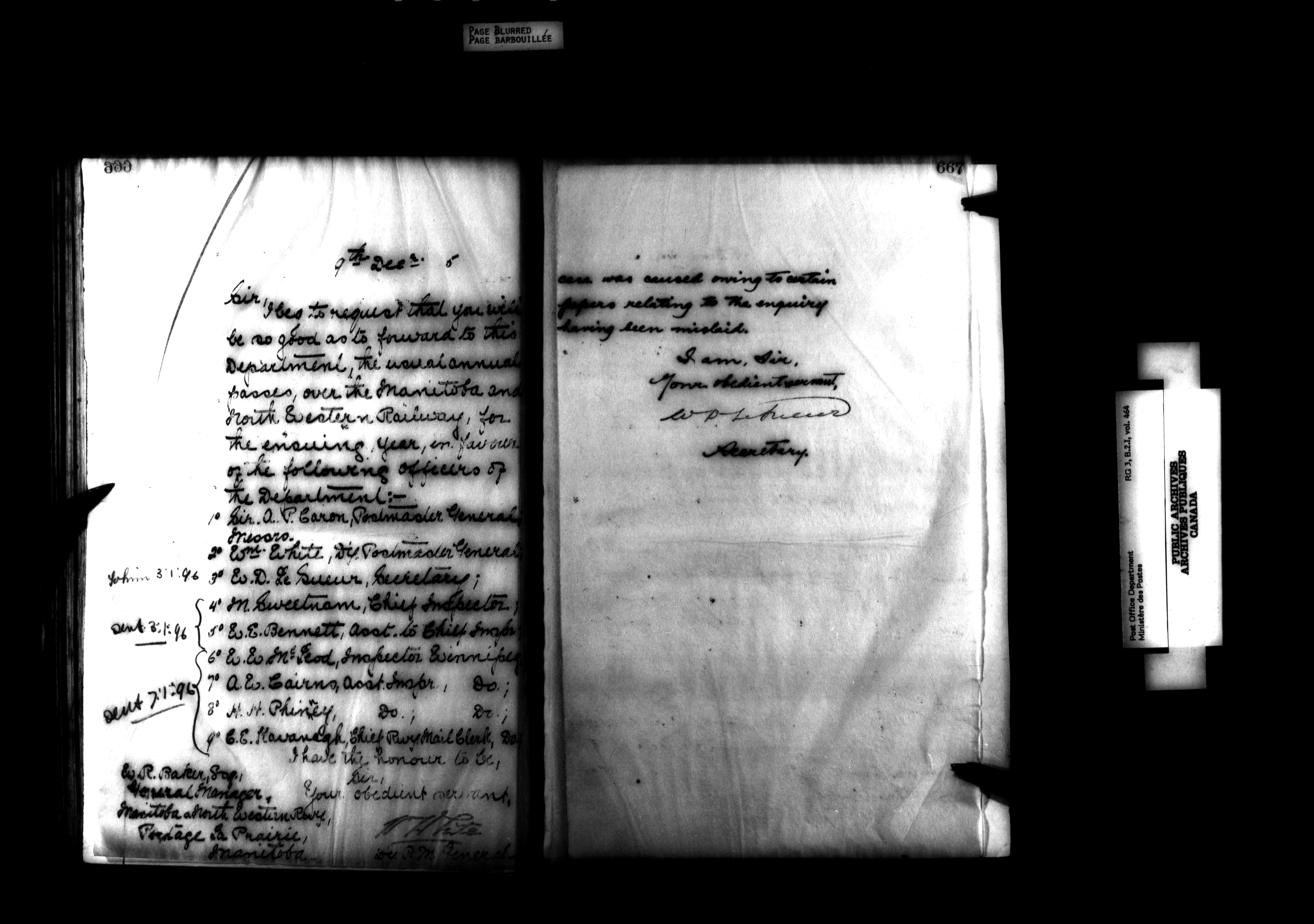 Records and general correspondence sent from the Postmaster General, 1851-1902 - 3923