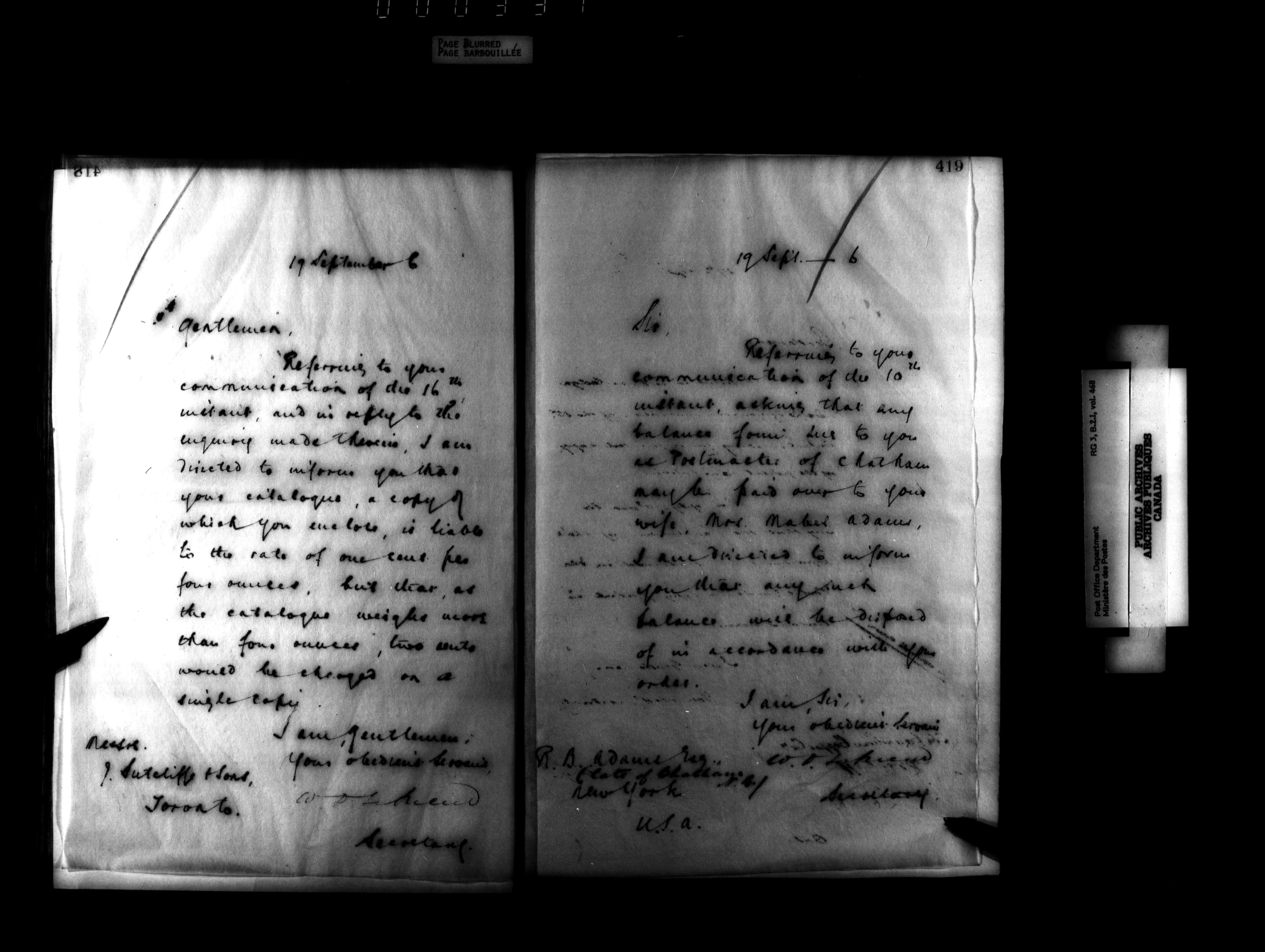 Records and general correspondence sent from the Postmaster General, 1851-1902 - 3926
