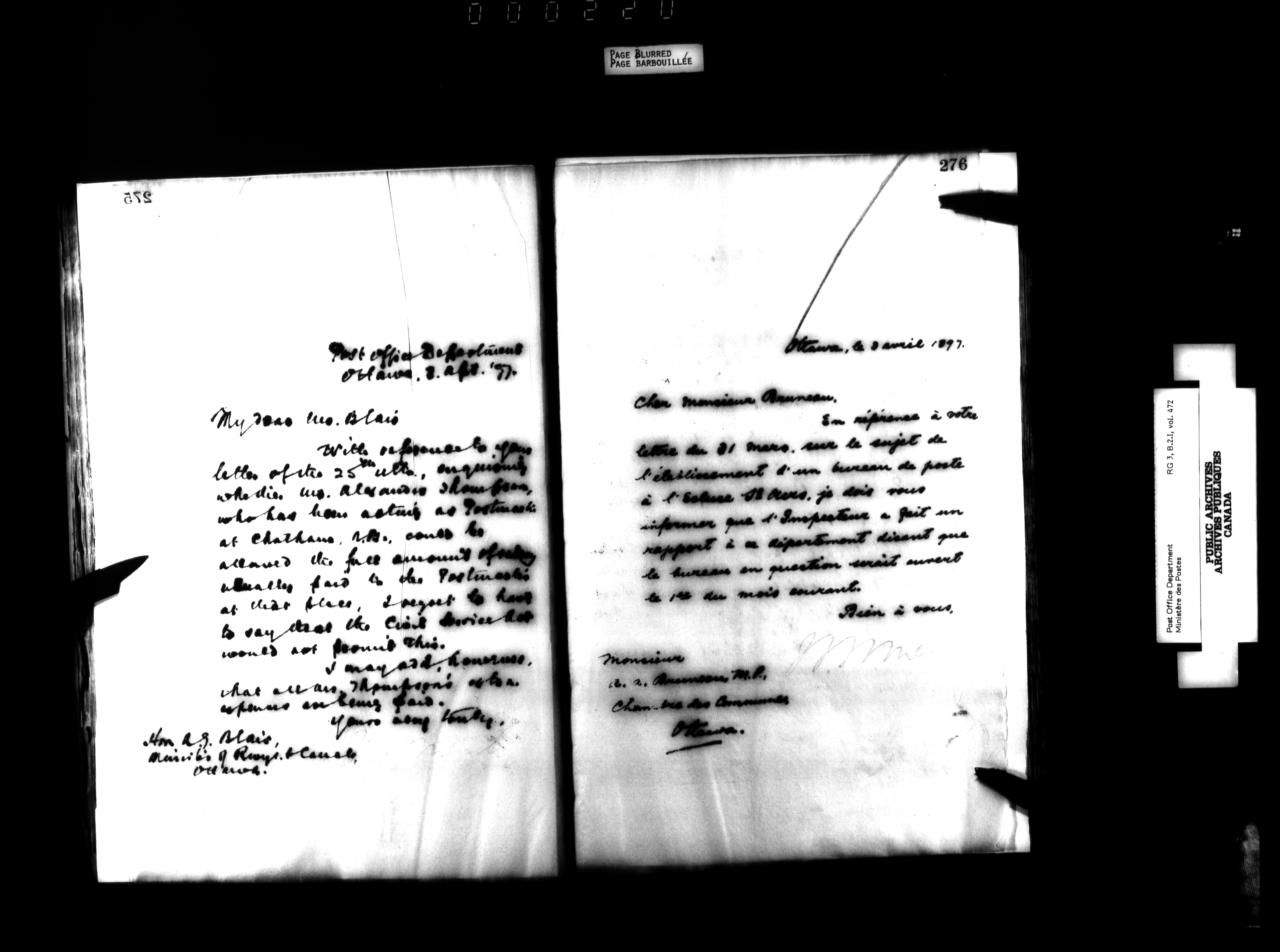 Records and general correspondence sent from the Postmaster General, 1851-1902 - 3929