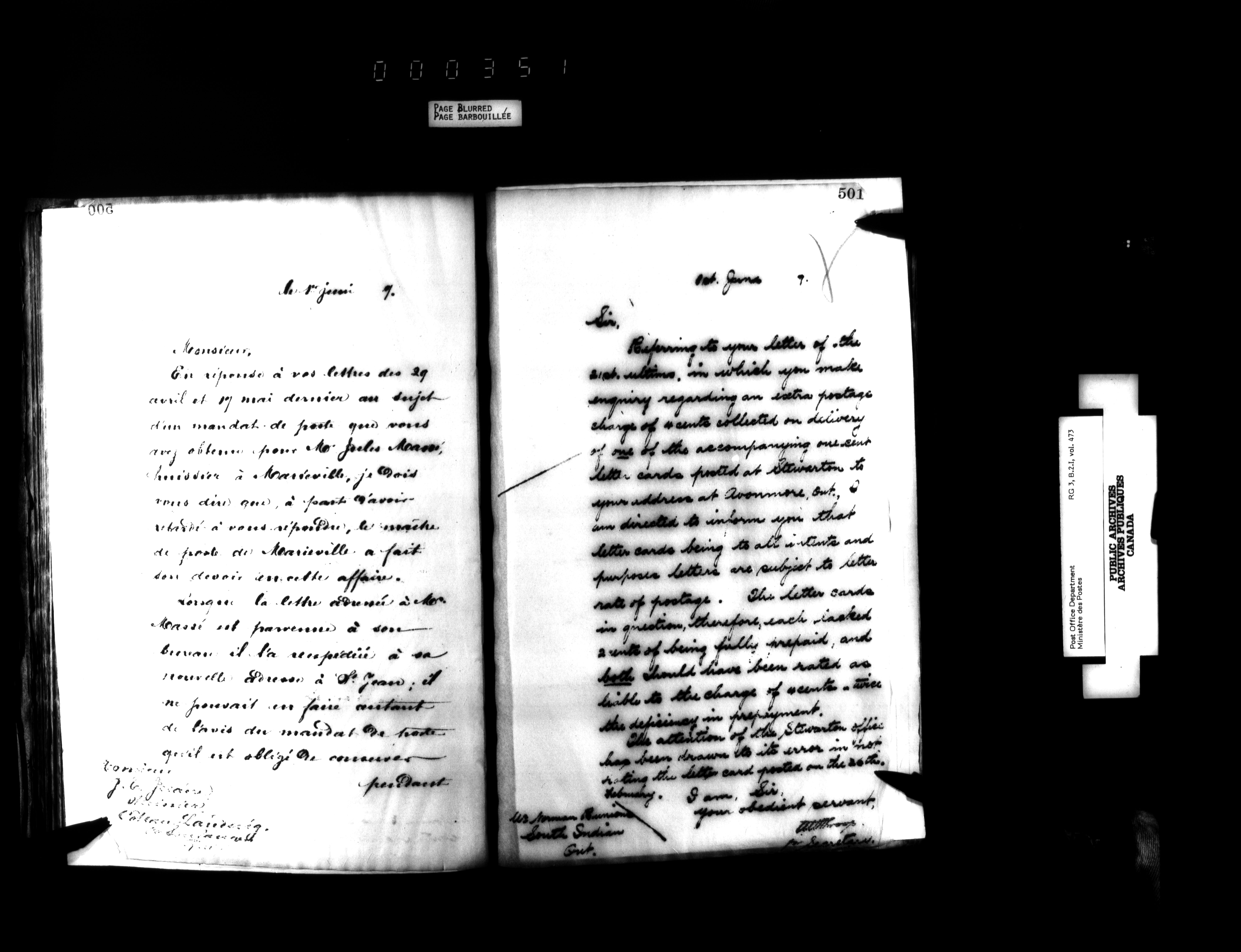 Records and general correspondence sent from the Postmaster General, 1851-1902 - 3930