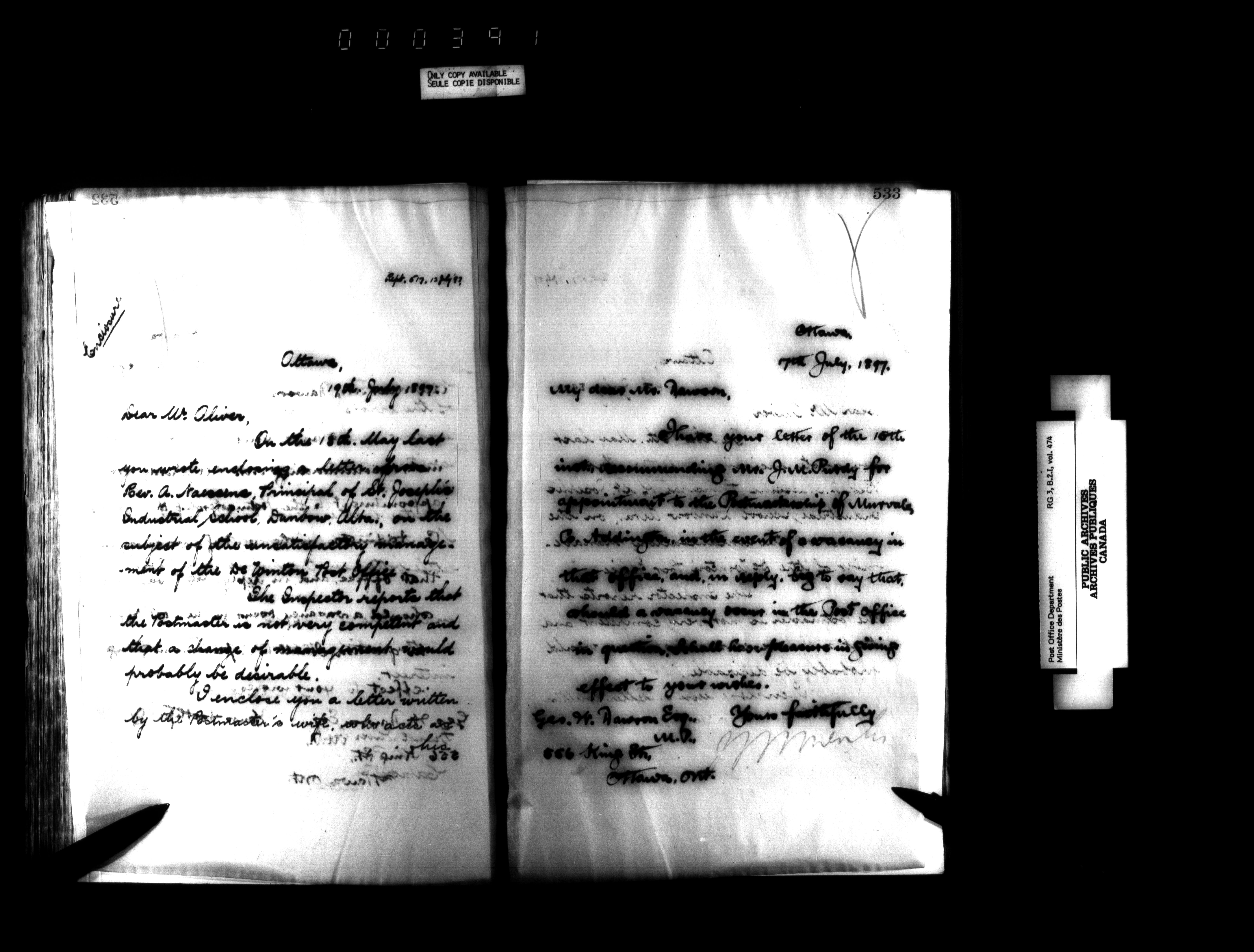 Records and general correspondence sent from the Postmaster General, 1851-1902 - 3930