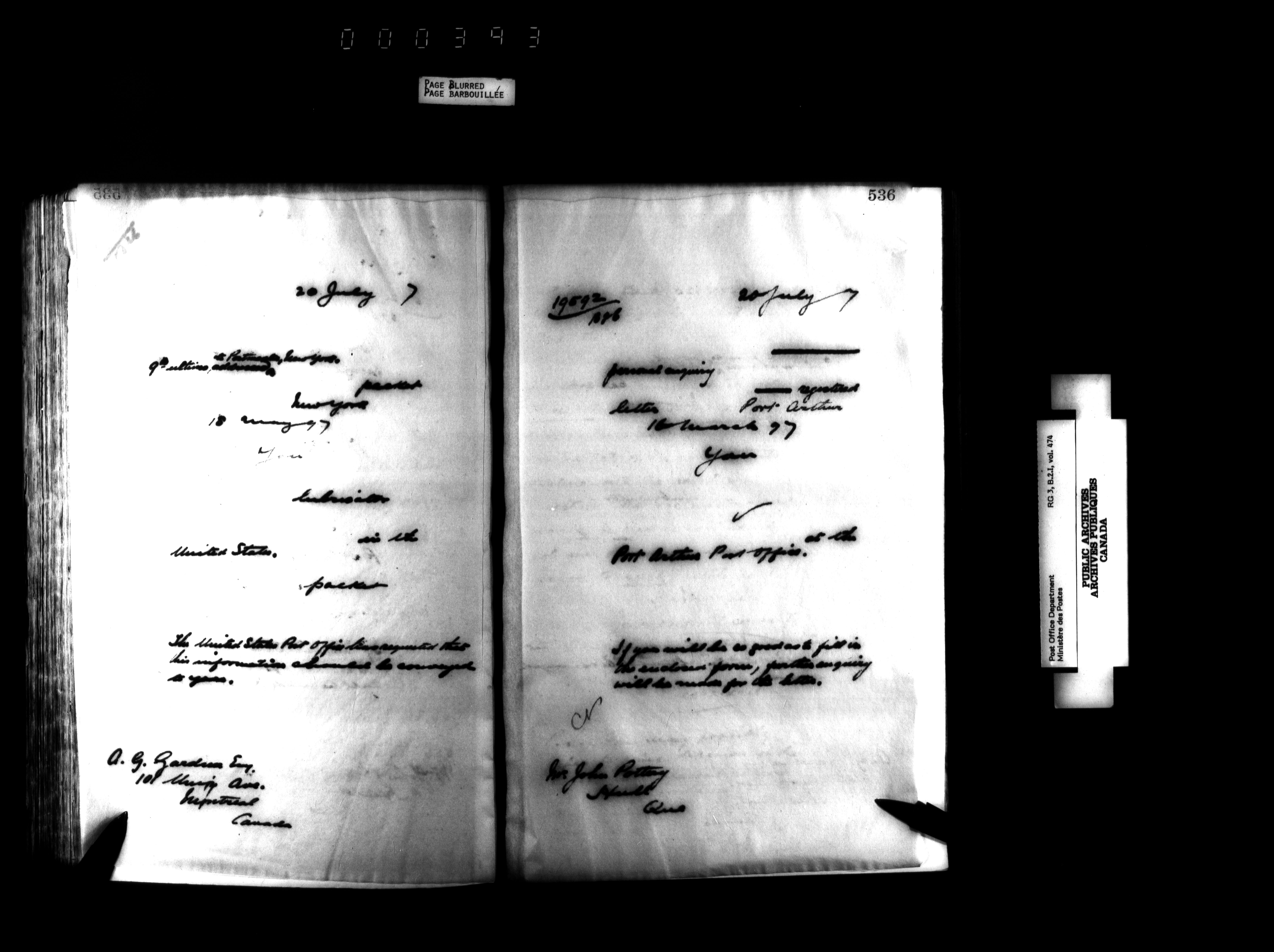 Records and general correspondence sent from the Postmaster General, 1851-1902 - 3930