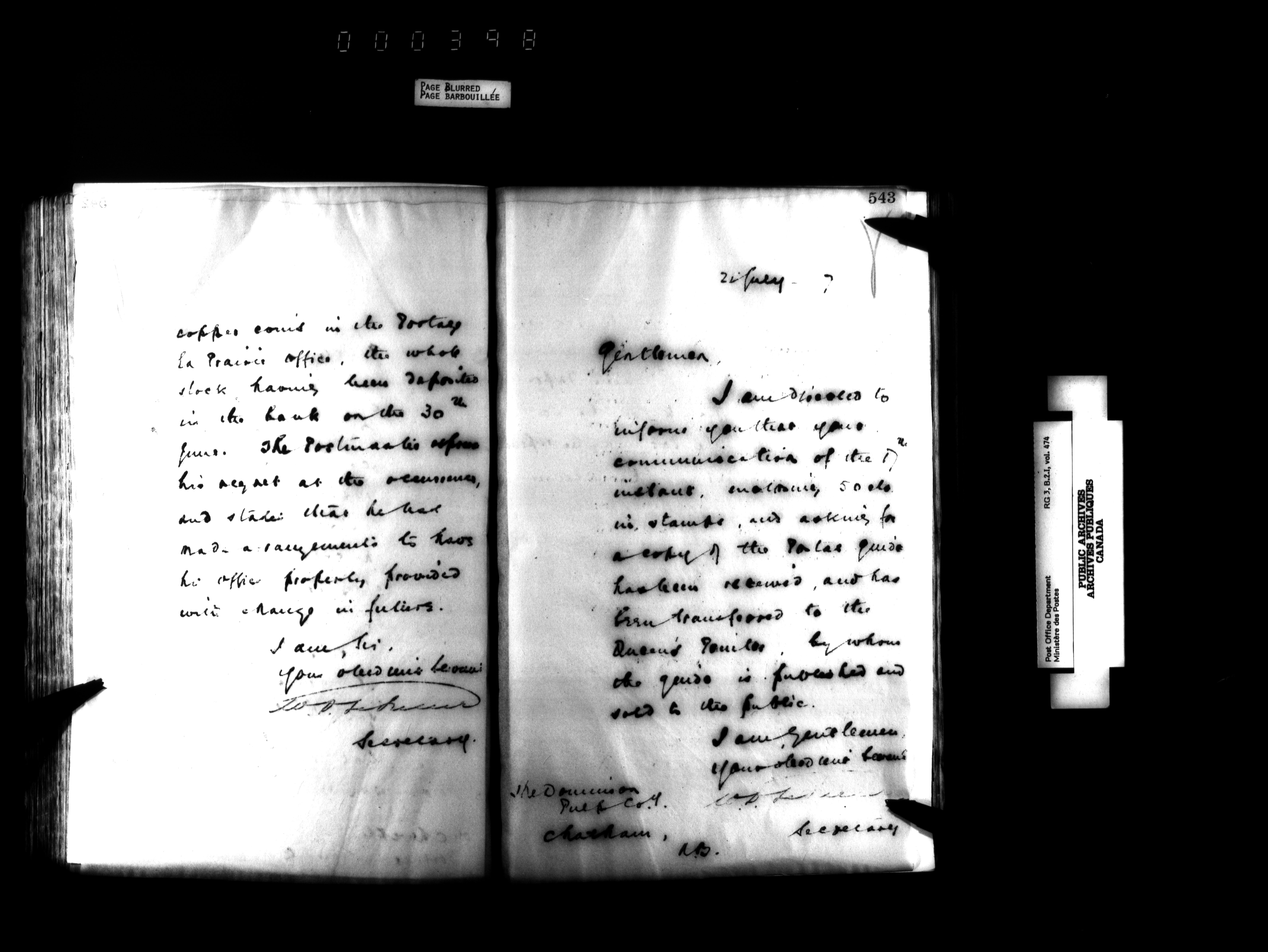 Records and general correspondence sent from the Postmaster General, 1851-1902 - 3930