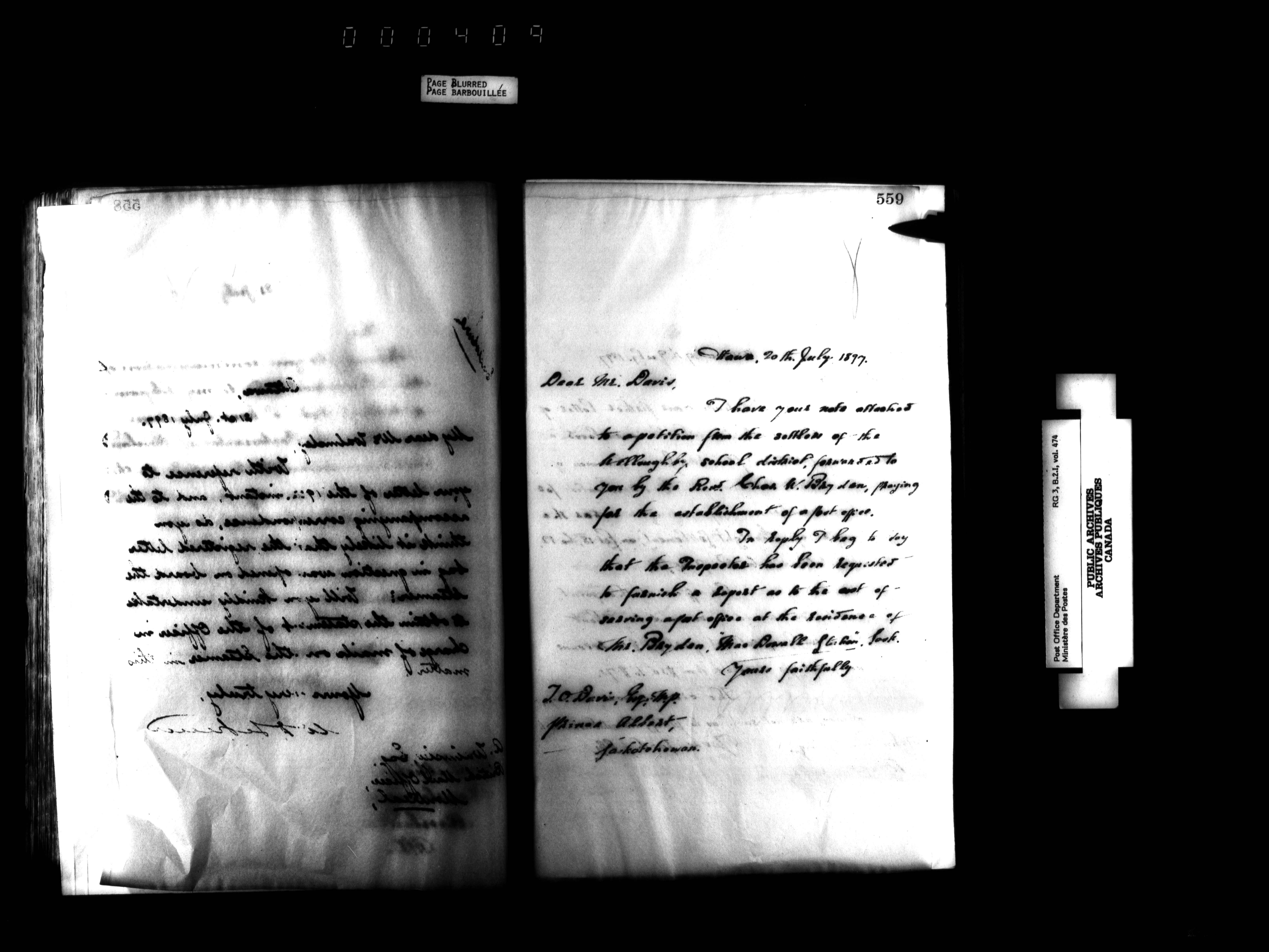 Records and general correspondence sent from the Postmaster General, 1851-1902 - 3930