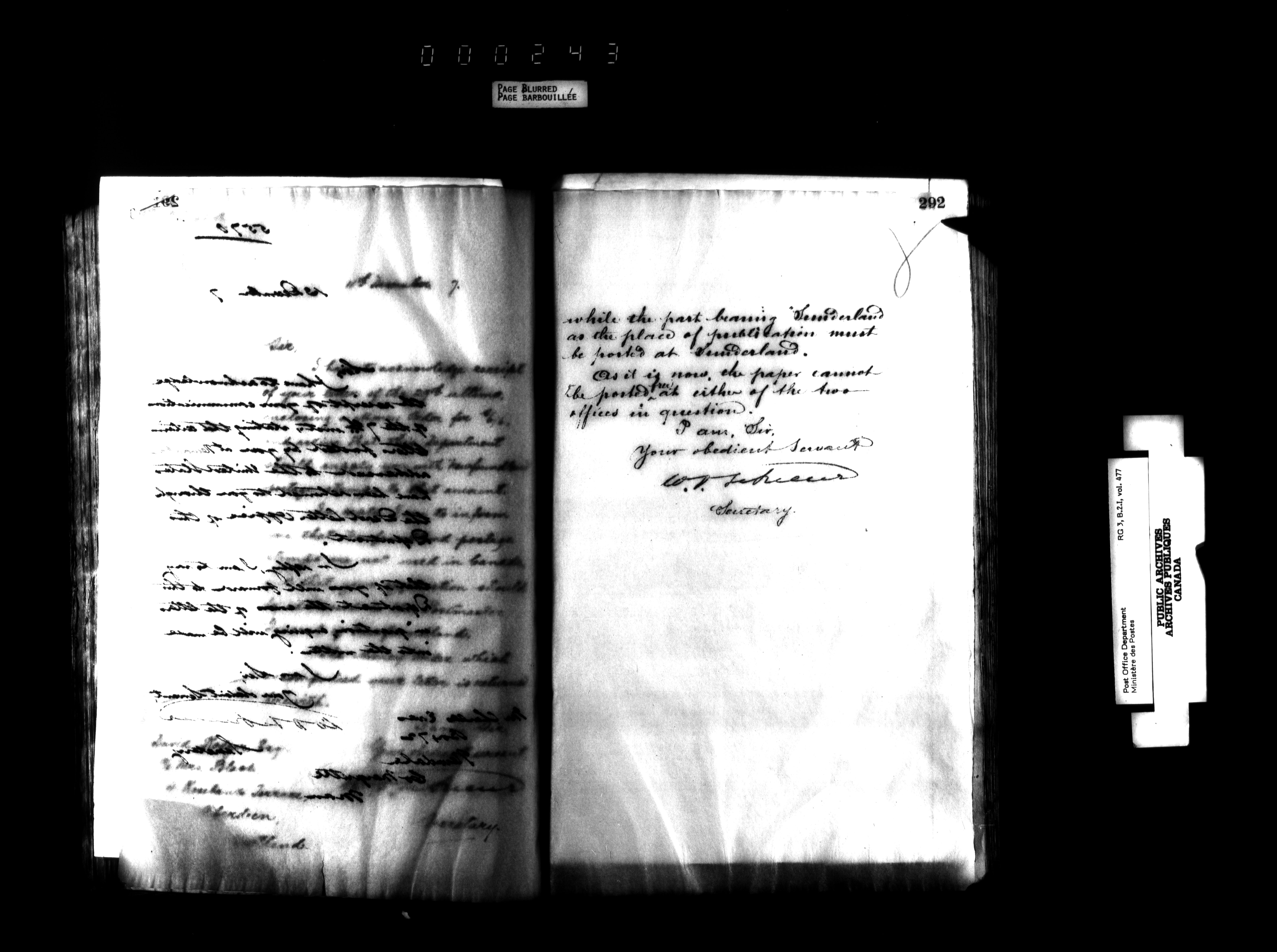 Records and general correspondence sent from the Postmaster General, 1851-1902 - 3933
