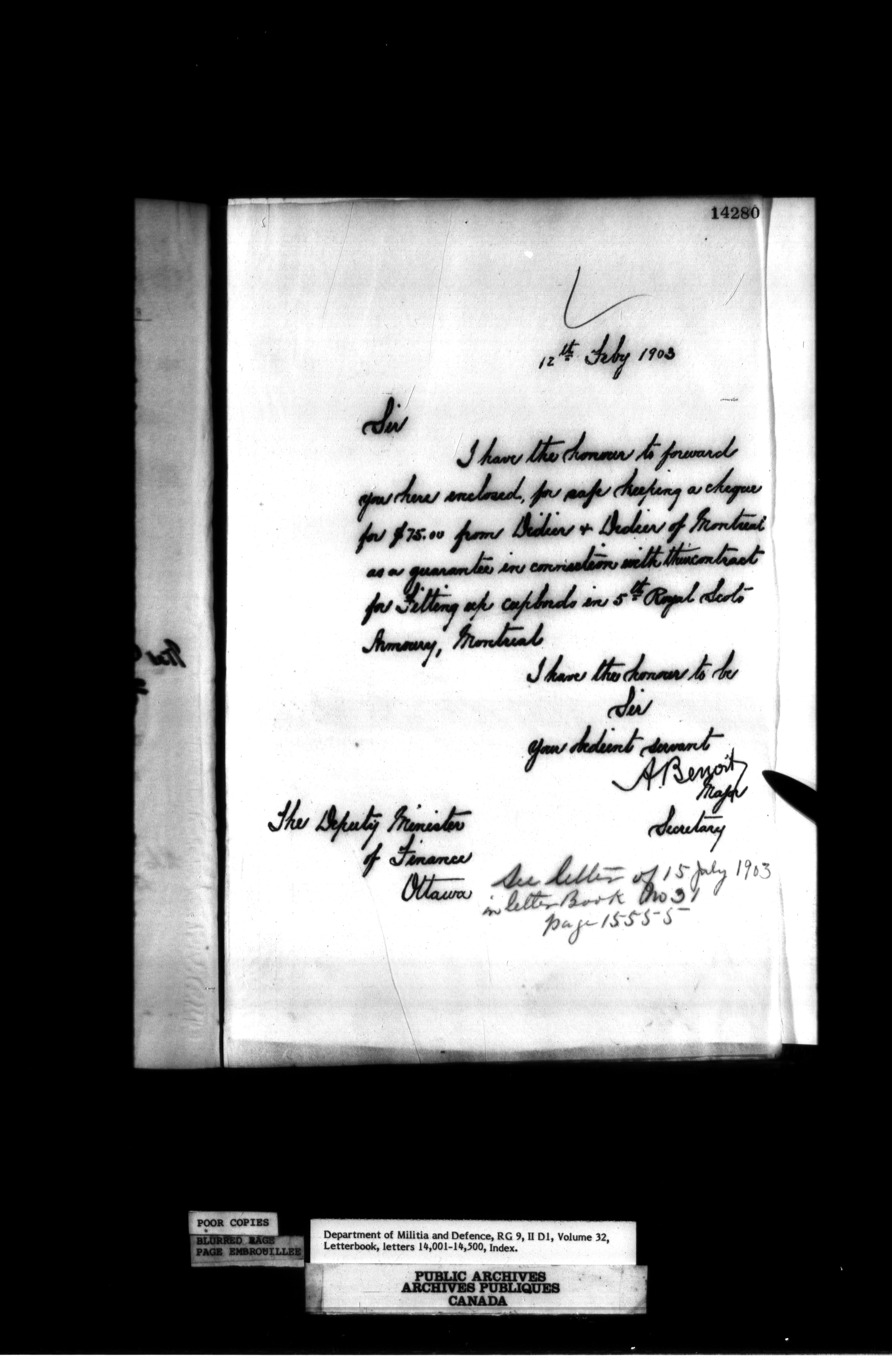 Department of Militia and Defence. Contracts Branch : Letterbooks, 1895-1912 : T-394