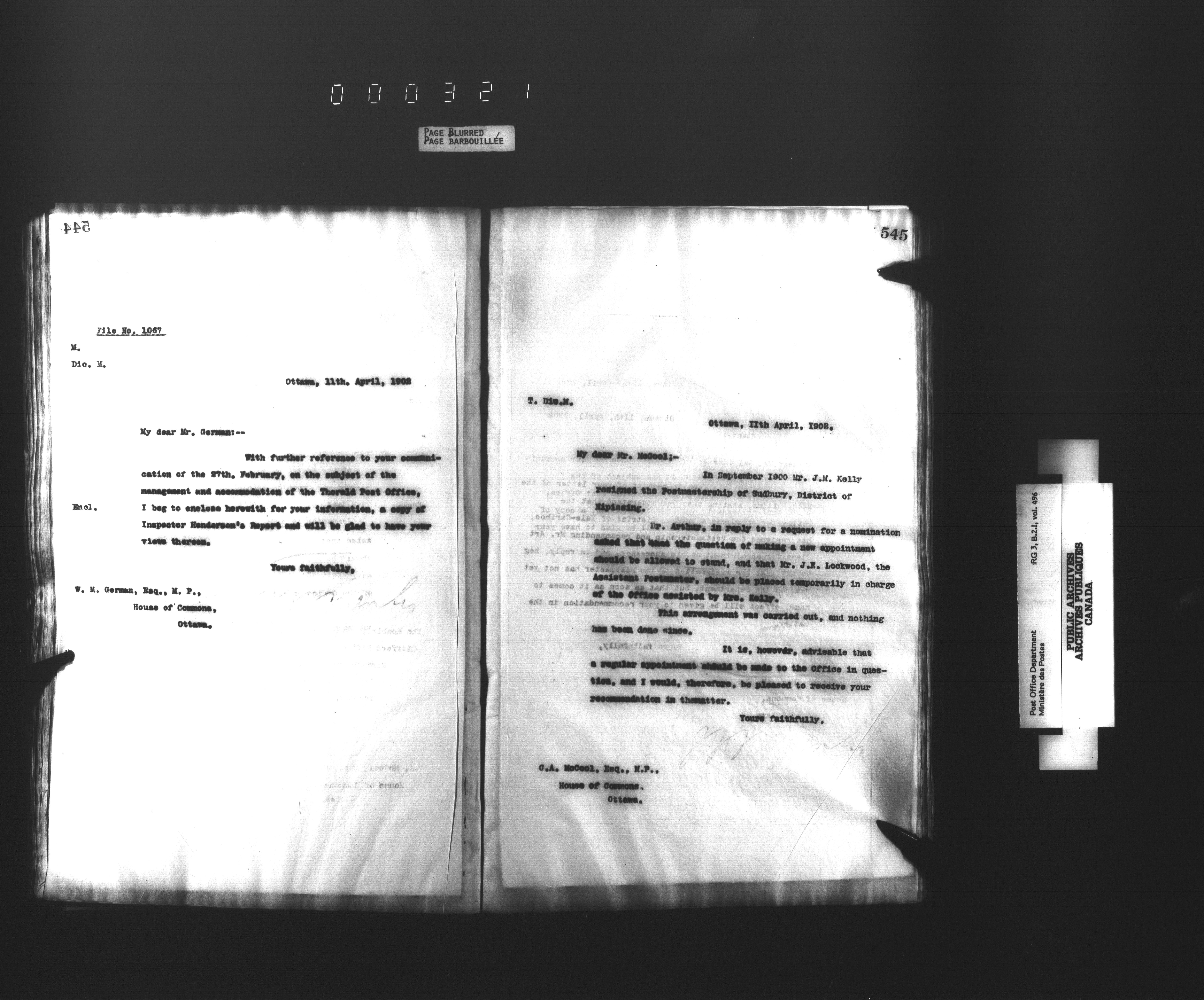 Records and general correspondence sent from the Postmaster General, 1851-1902 - 3948