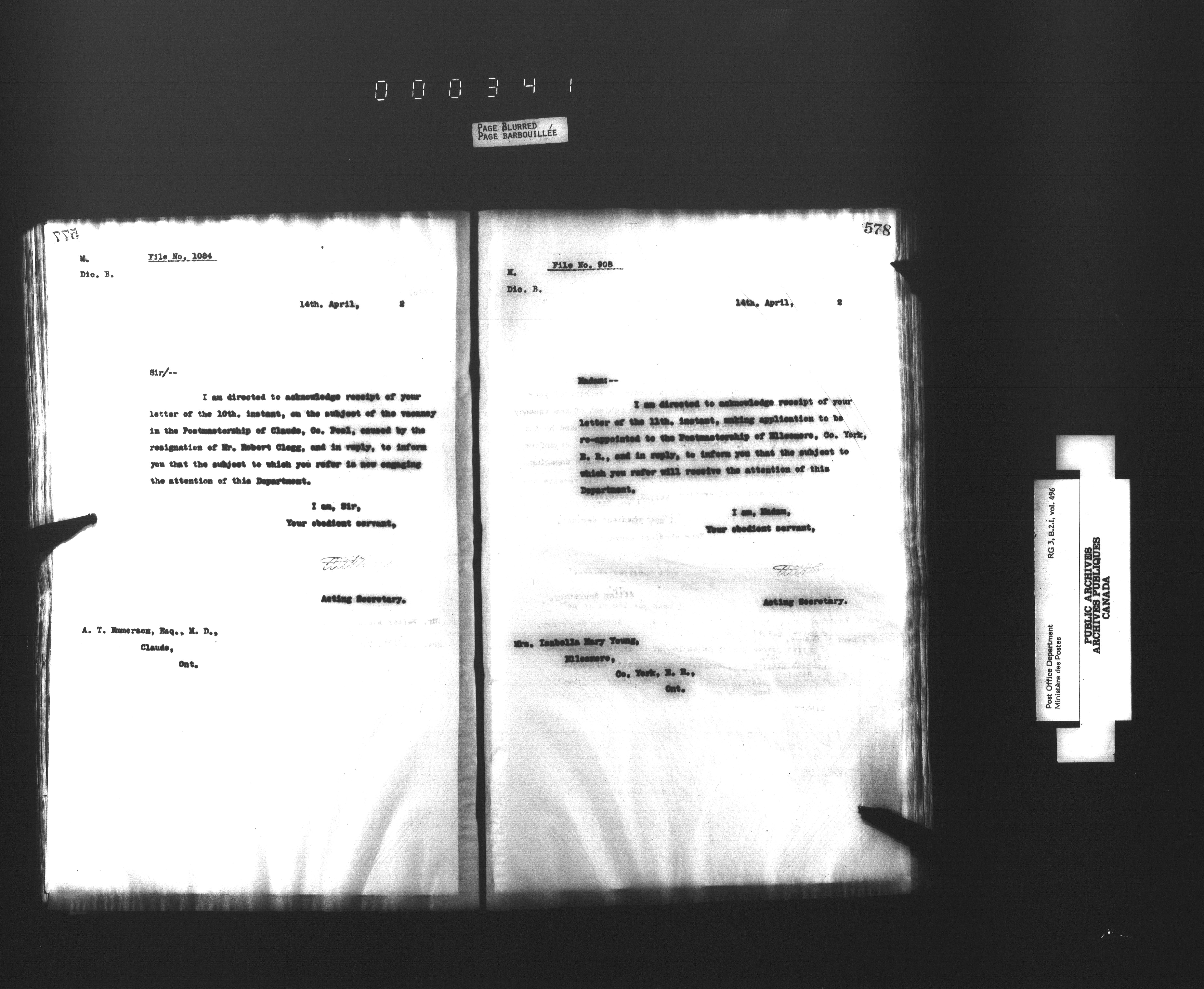 Records and general correspondence sent from the Postmaster General, 1851-1902 - 3948