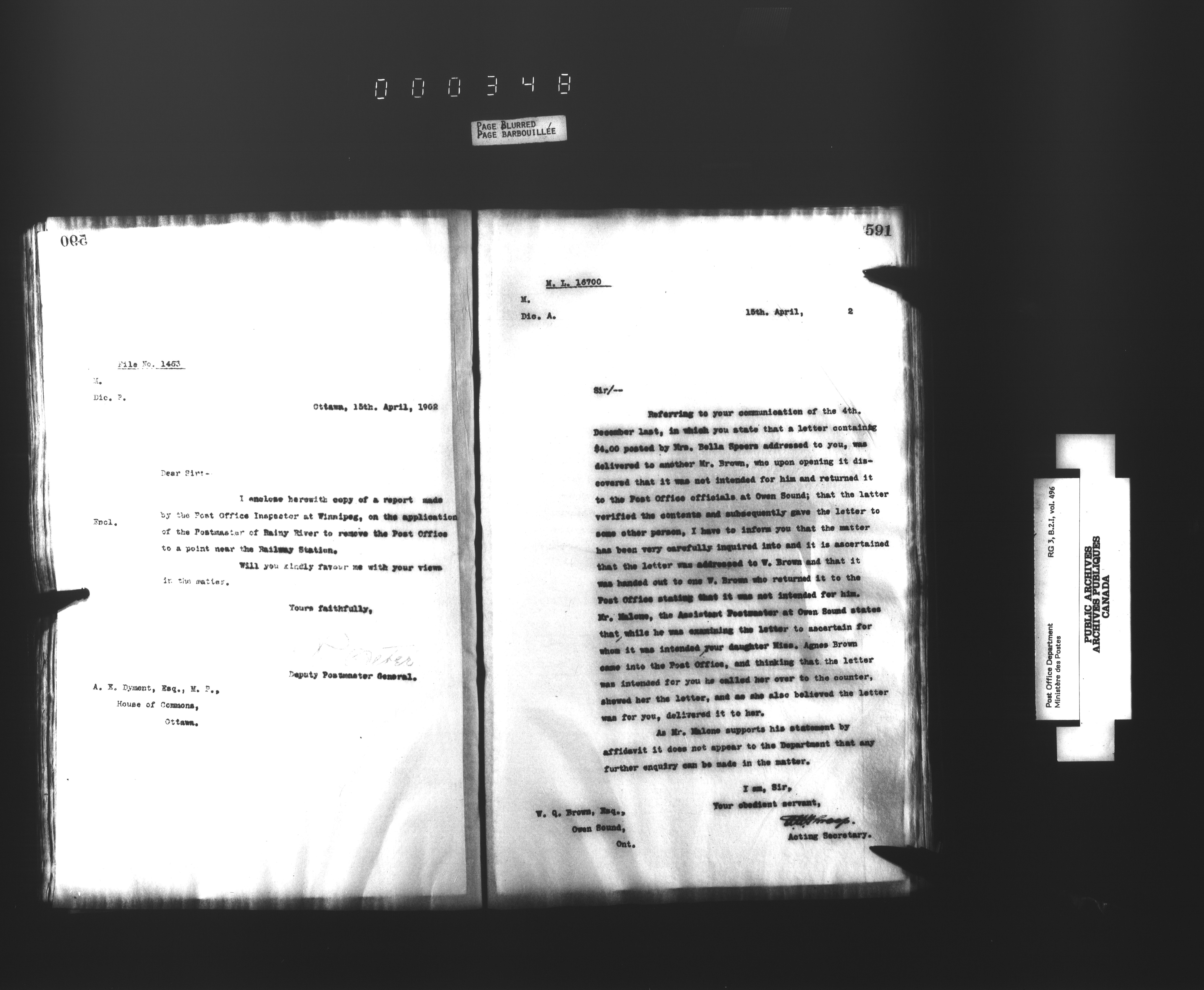 Records and general correspondence sent from the Postmaster General, 1851-1902 - 3948