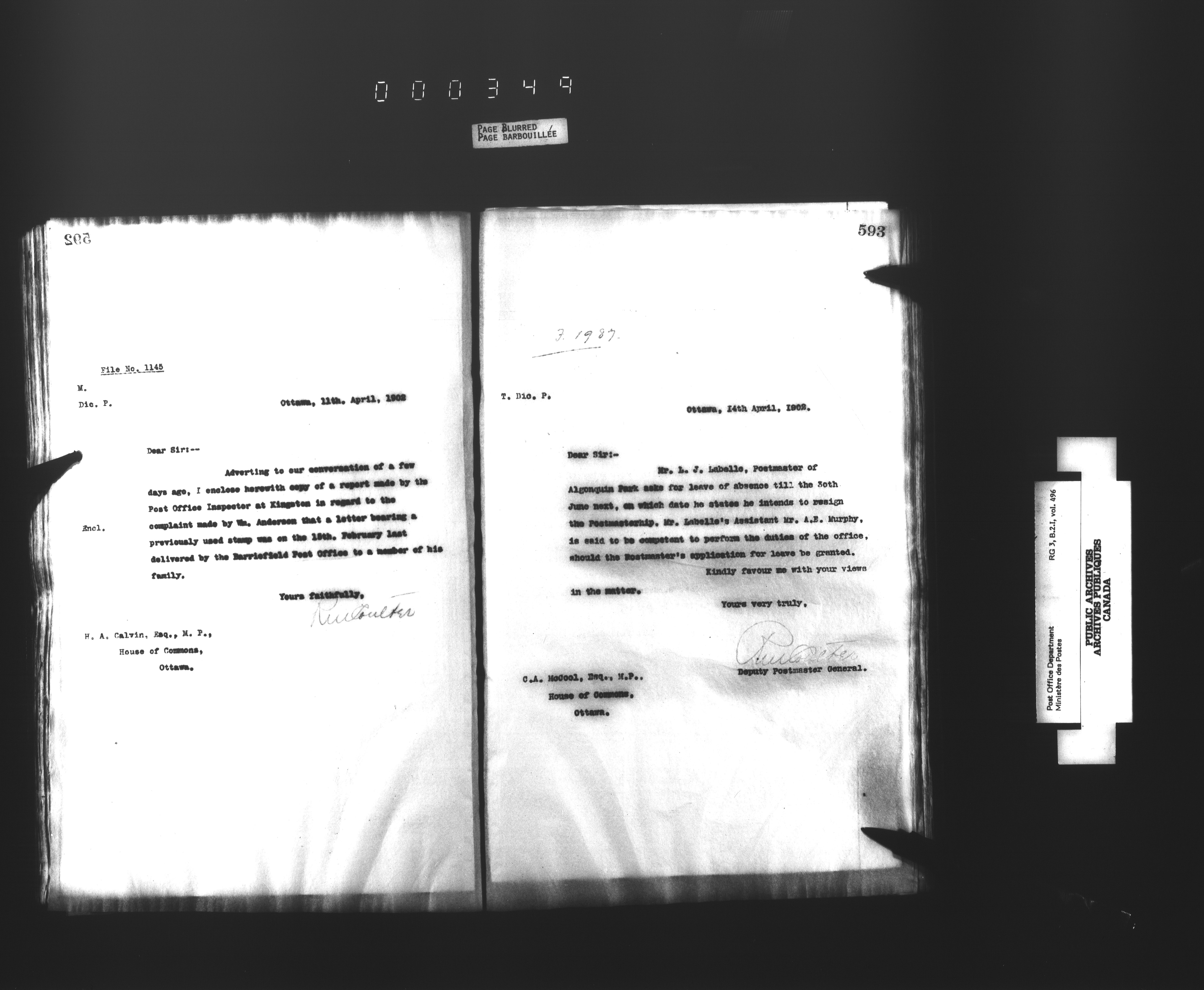 Records and general correspondence sent from the Postmaster General, 1851-1902 - 3948