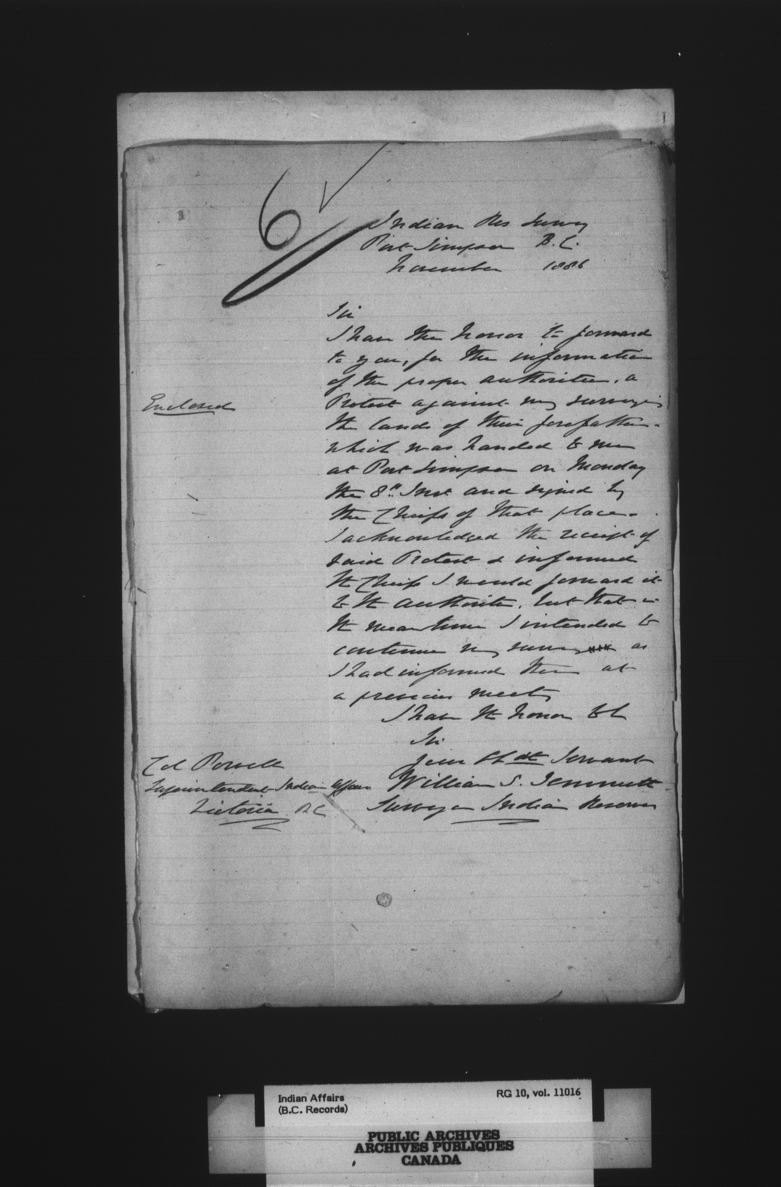 Department of Indian Affairs : Indian Commissioner for British Columbia - 3951
