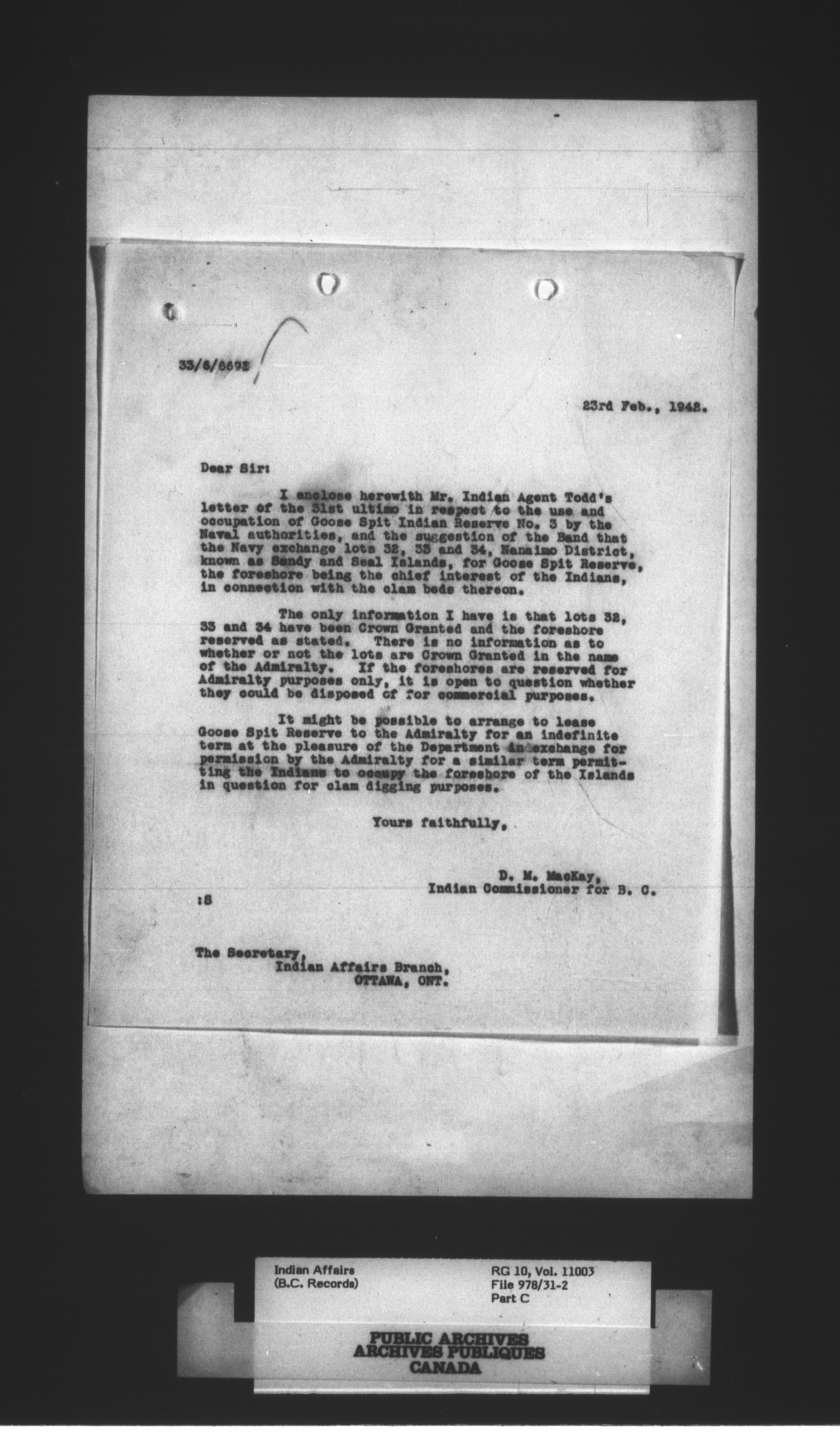 Department of Indian Affairs: Indian Commissioner for British Columbia - 3953
