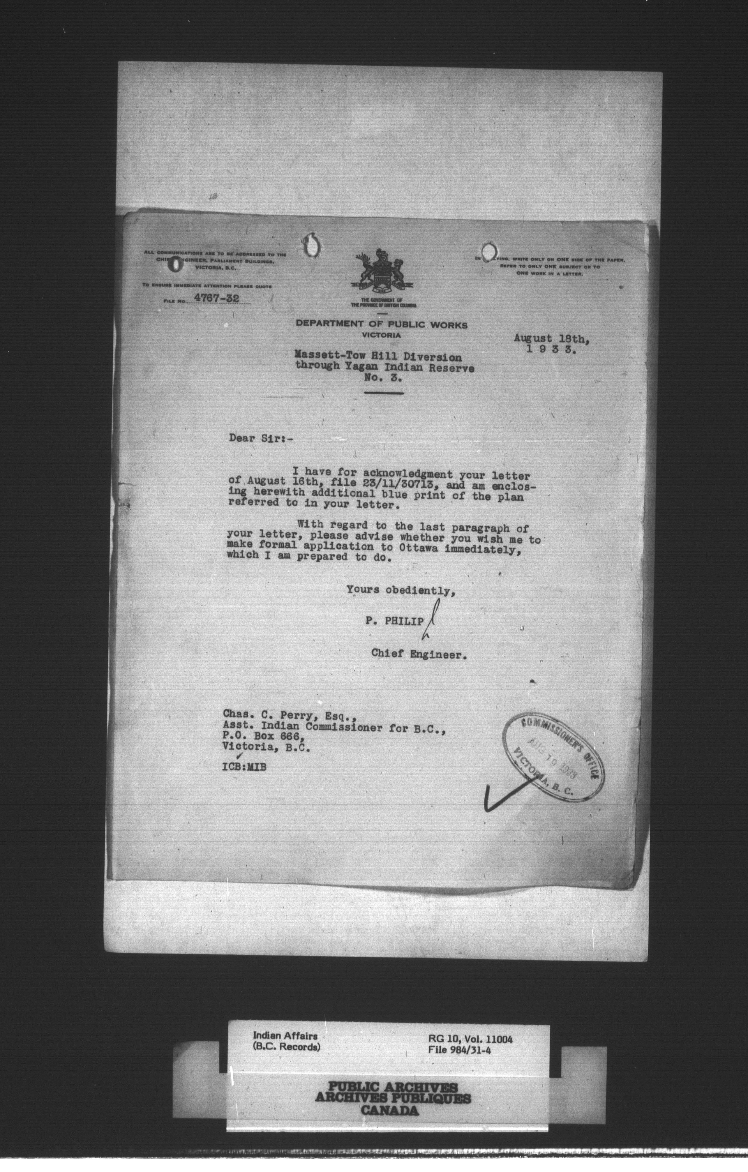 Department of Indian Affairs: Indian Commissioner for British Columbia - 3954