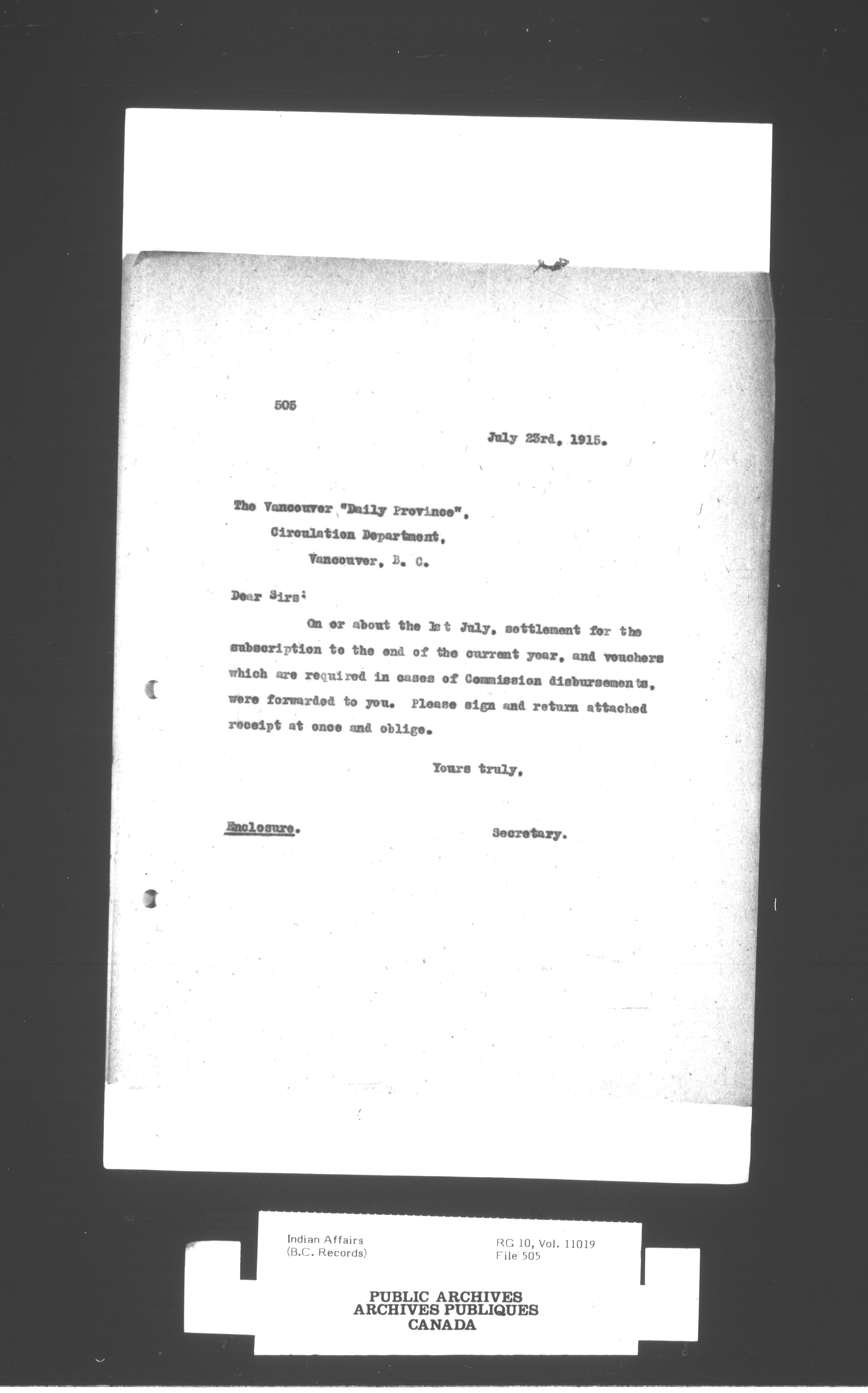 Royal Commission on Indian Affairs for the Province of British Columbia : T-3956