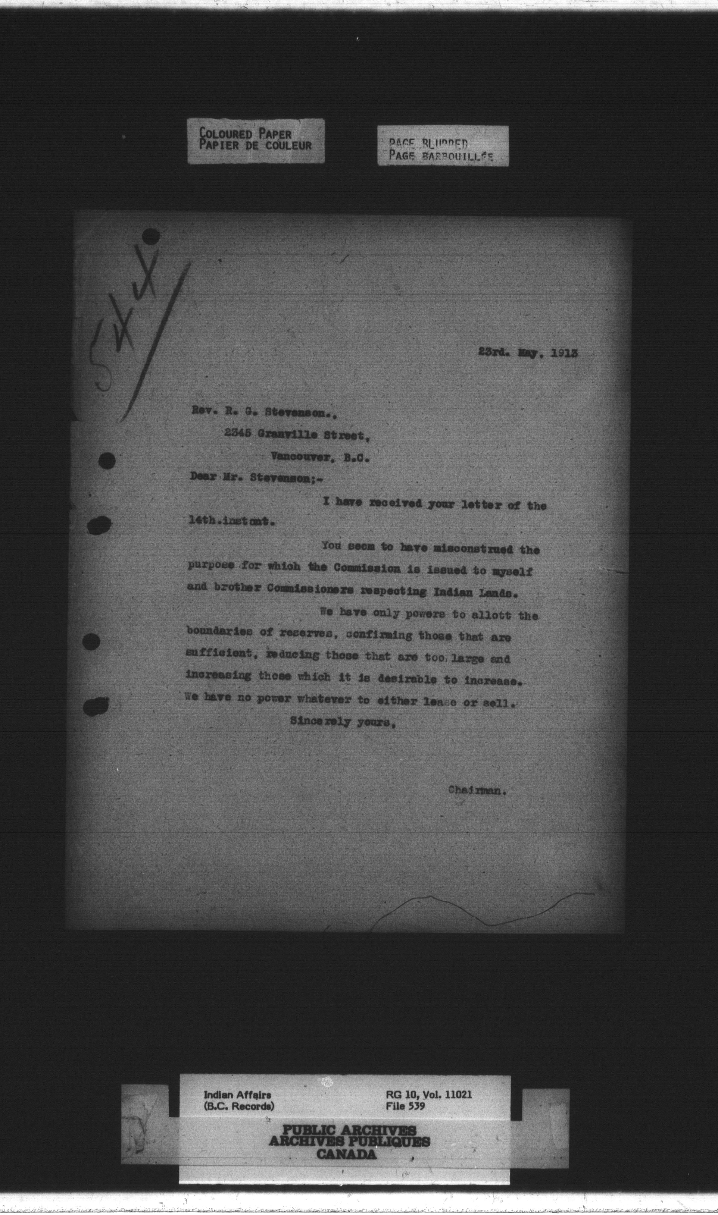Royal Commission on Indian Affairs for the Province of British Columbia : T-3959