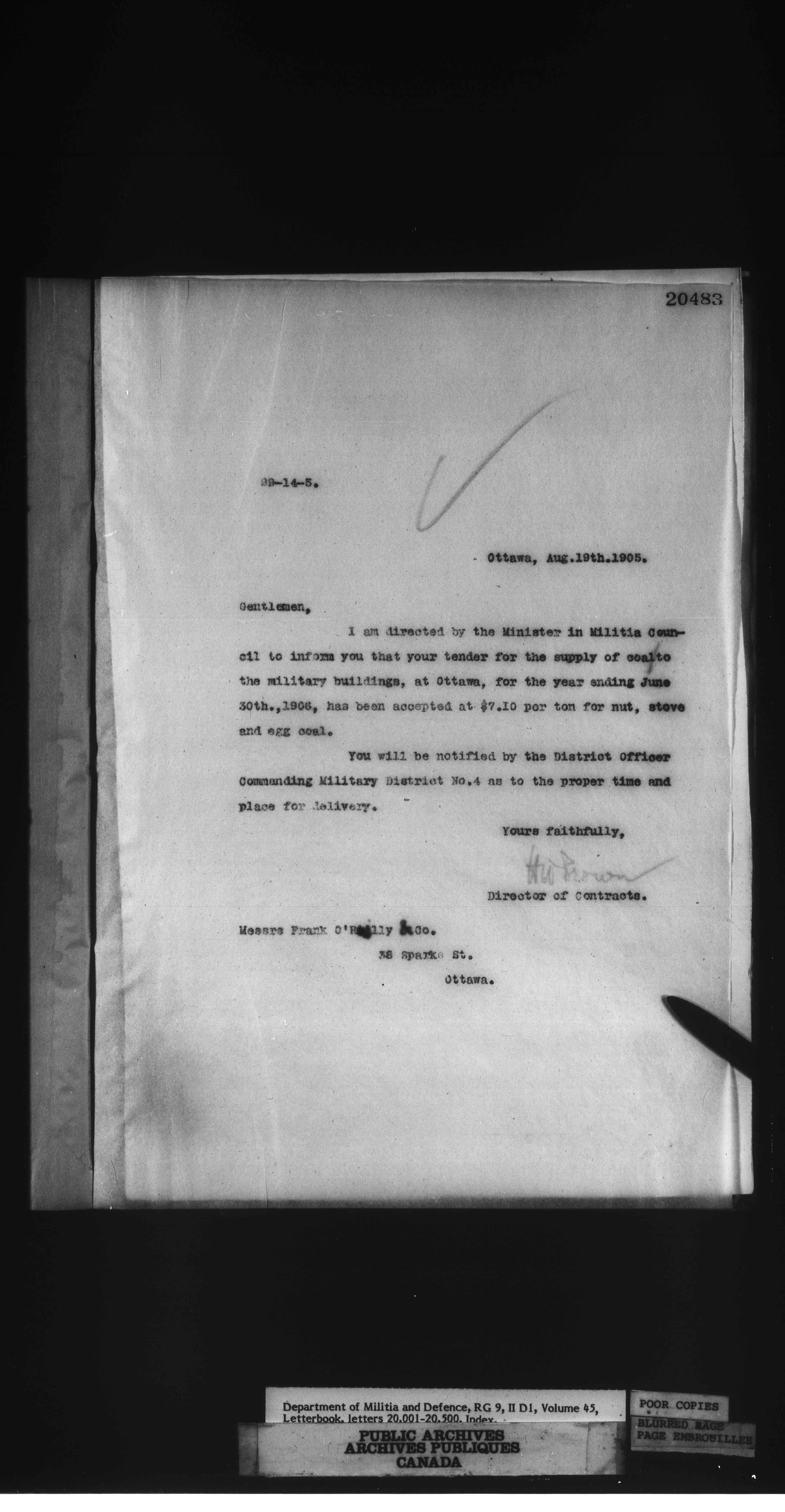 Department of Militia and Defence : Contracts Branch letterbooks, 1895-1912 - 399