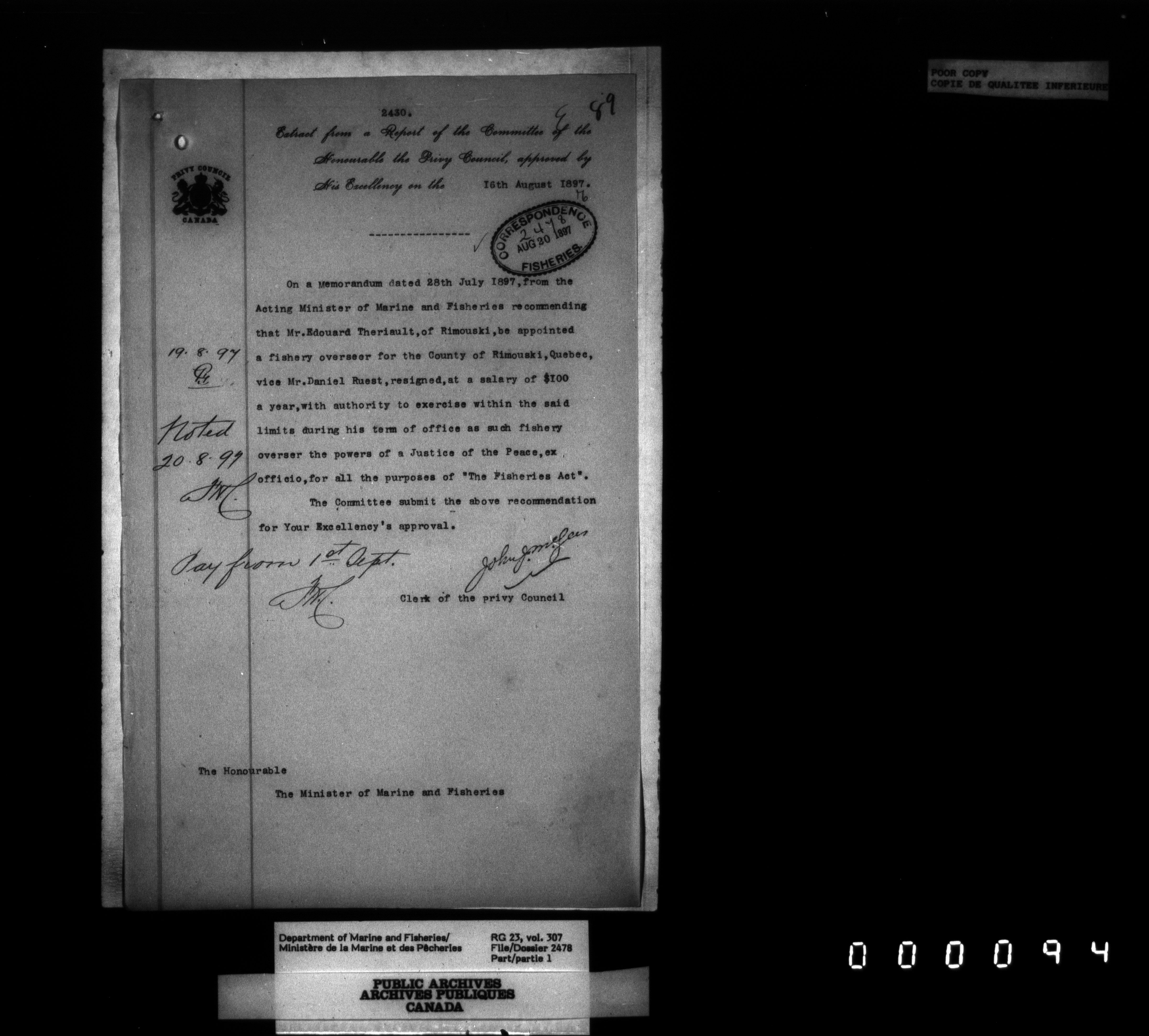 Fisheries Branch Registry files : T-3992