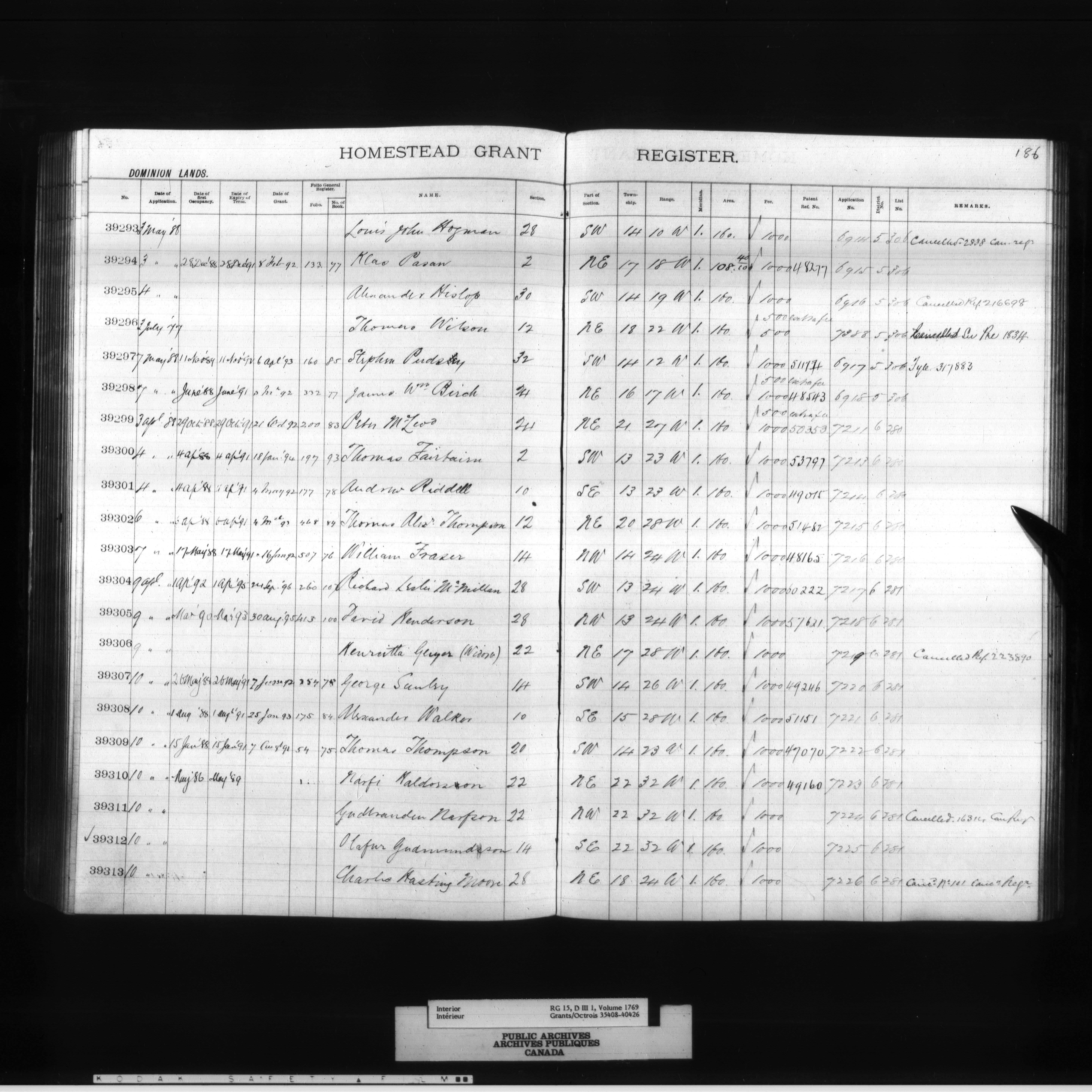 Homestead grant registers - 4