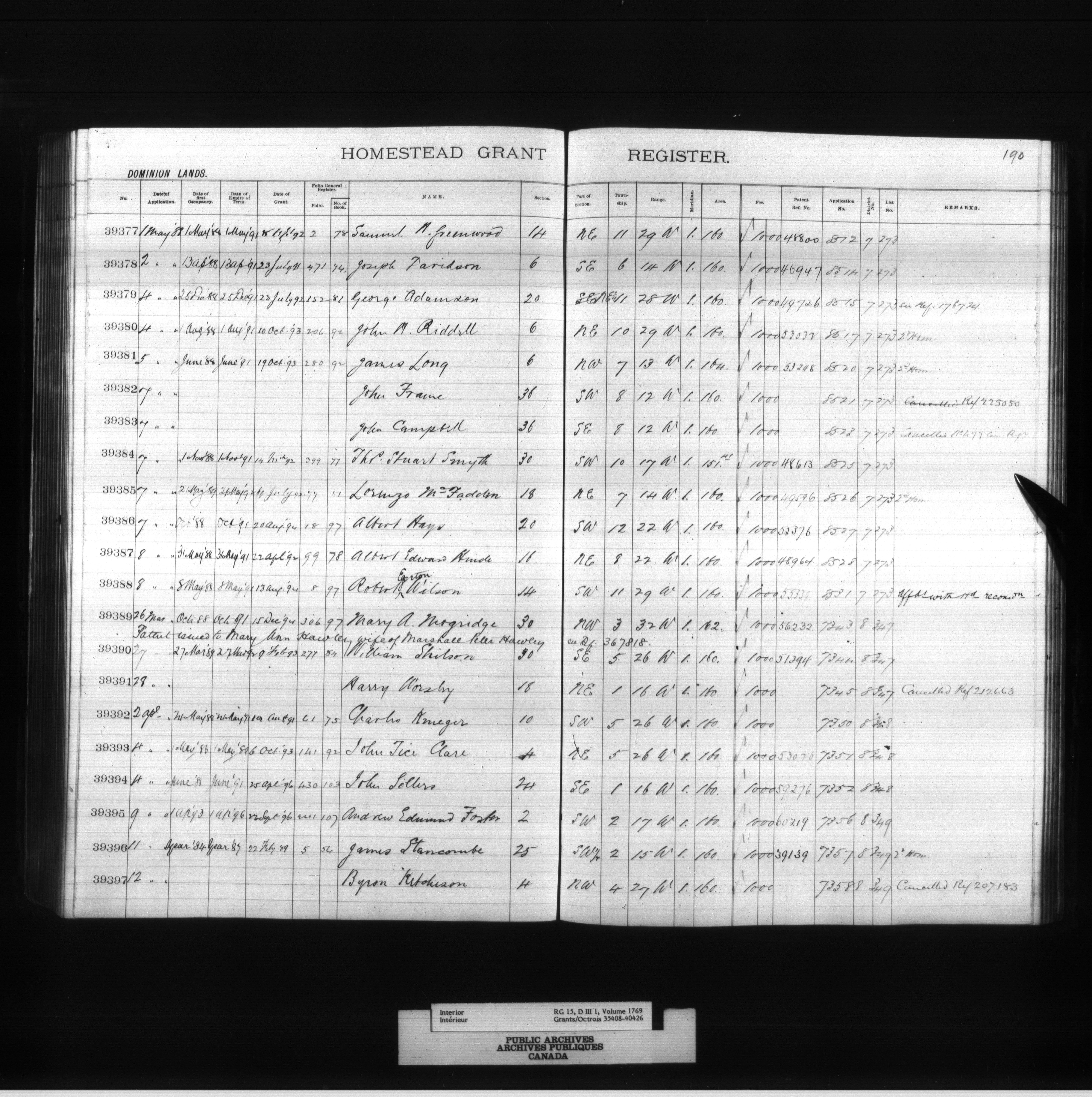 Homestead grant registers - 4