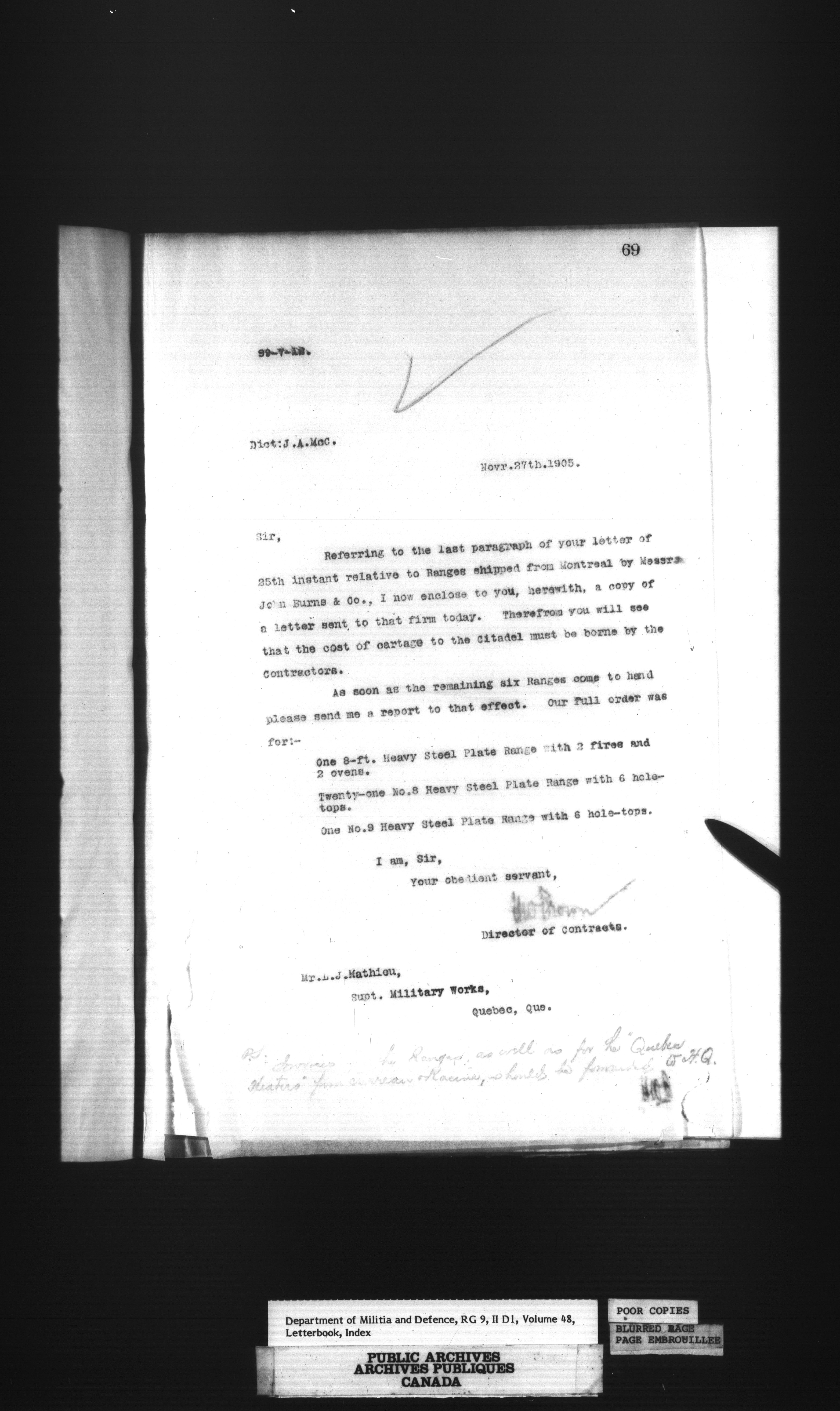 Department of Militia and Defence. Contracts Branch : Letterbooks, 1895-1912 : T-400