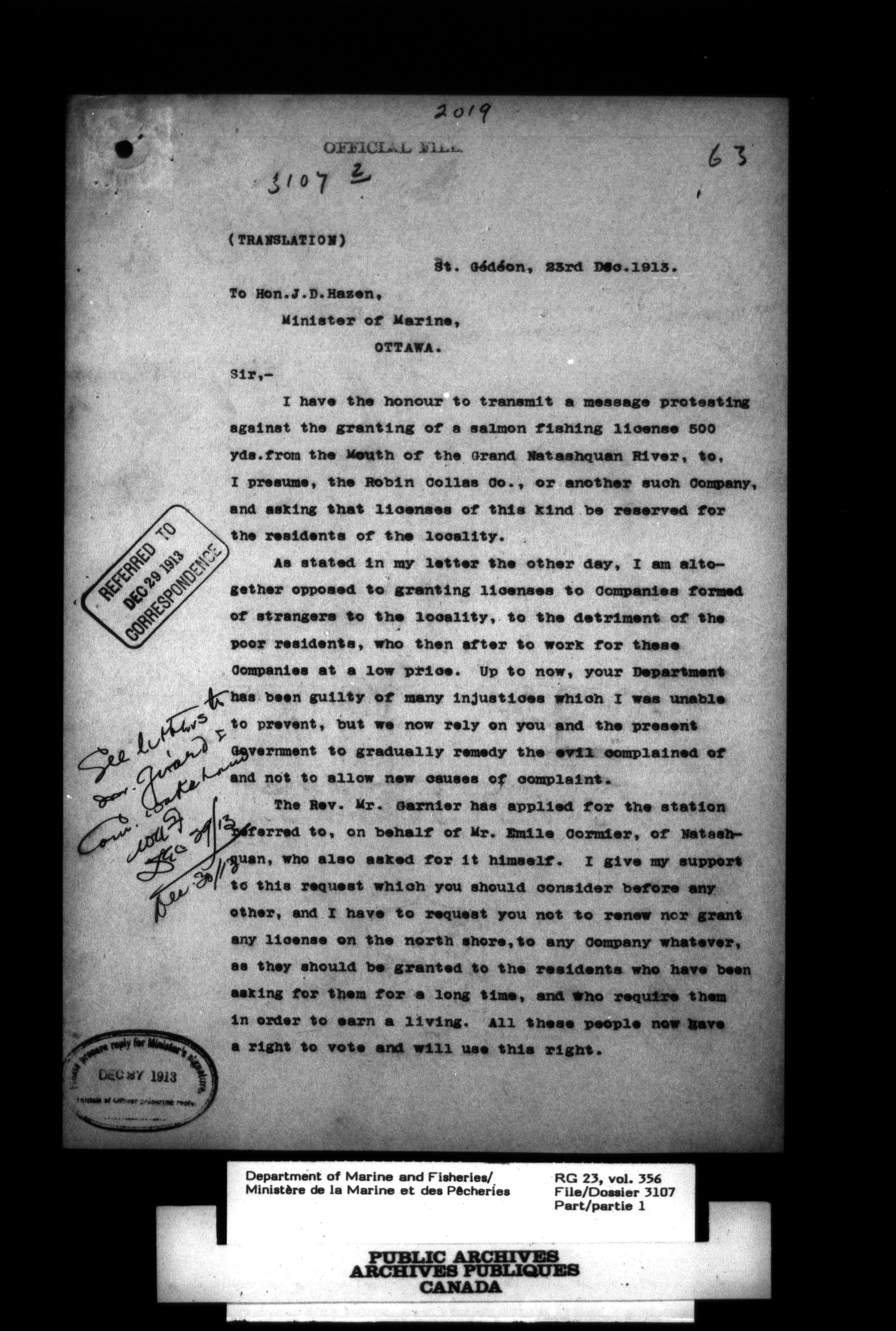 Index and correspondence registers related to the Fisheries Branch registry files - 4046