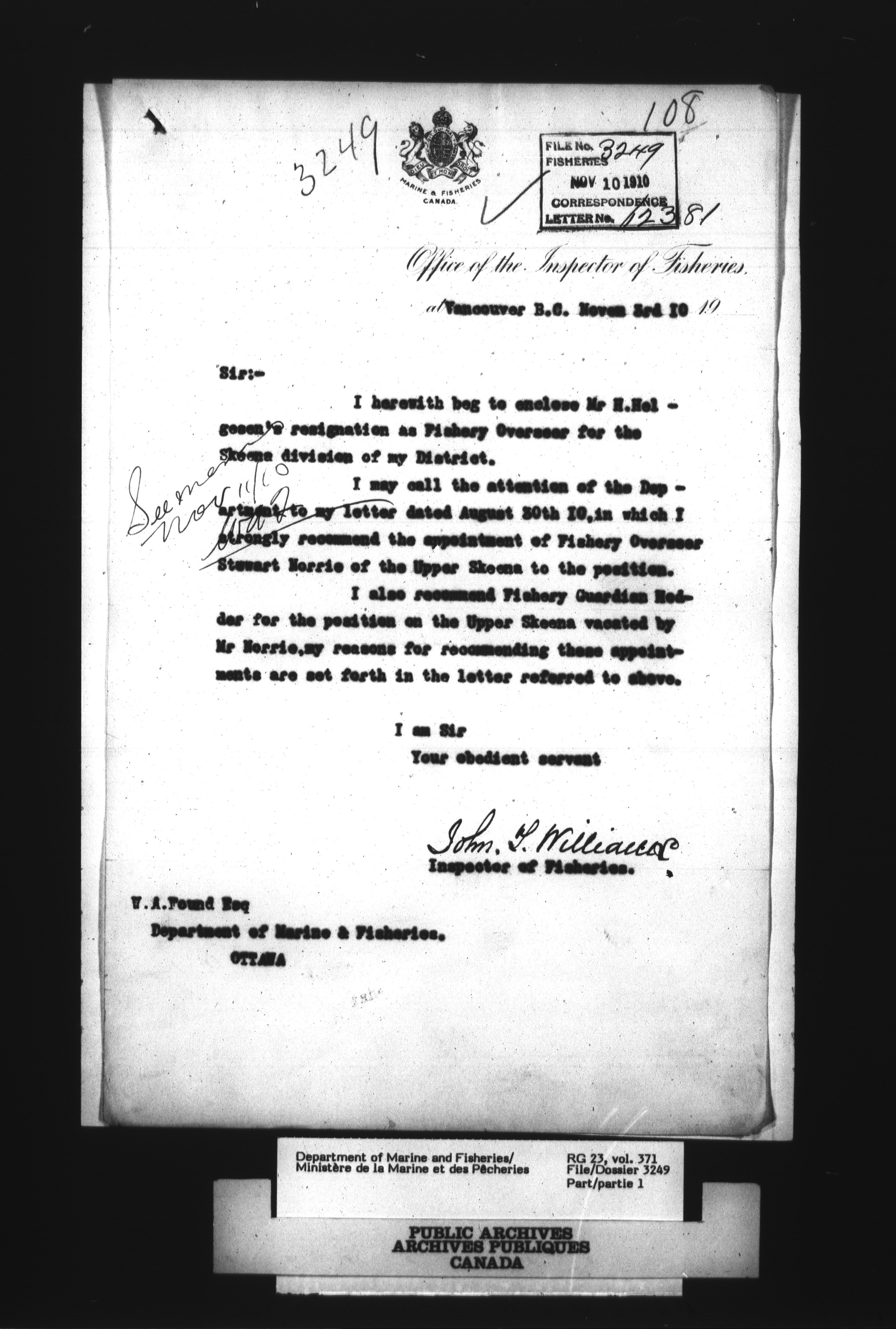 Index and correspondence registers related to the Fisheries Branch registry files - 4062