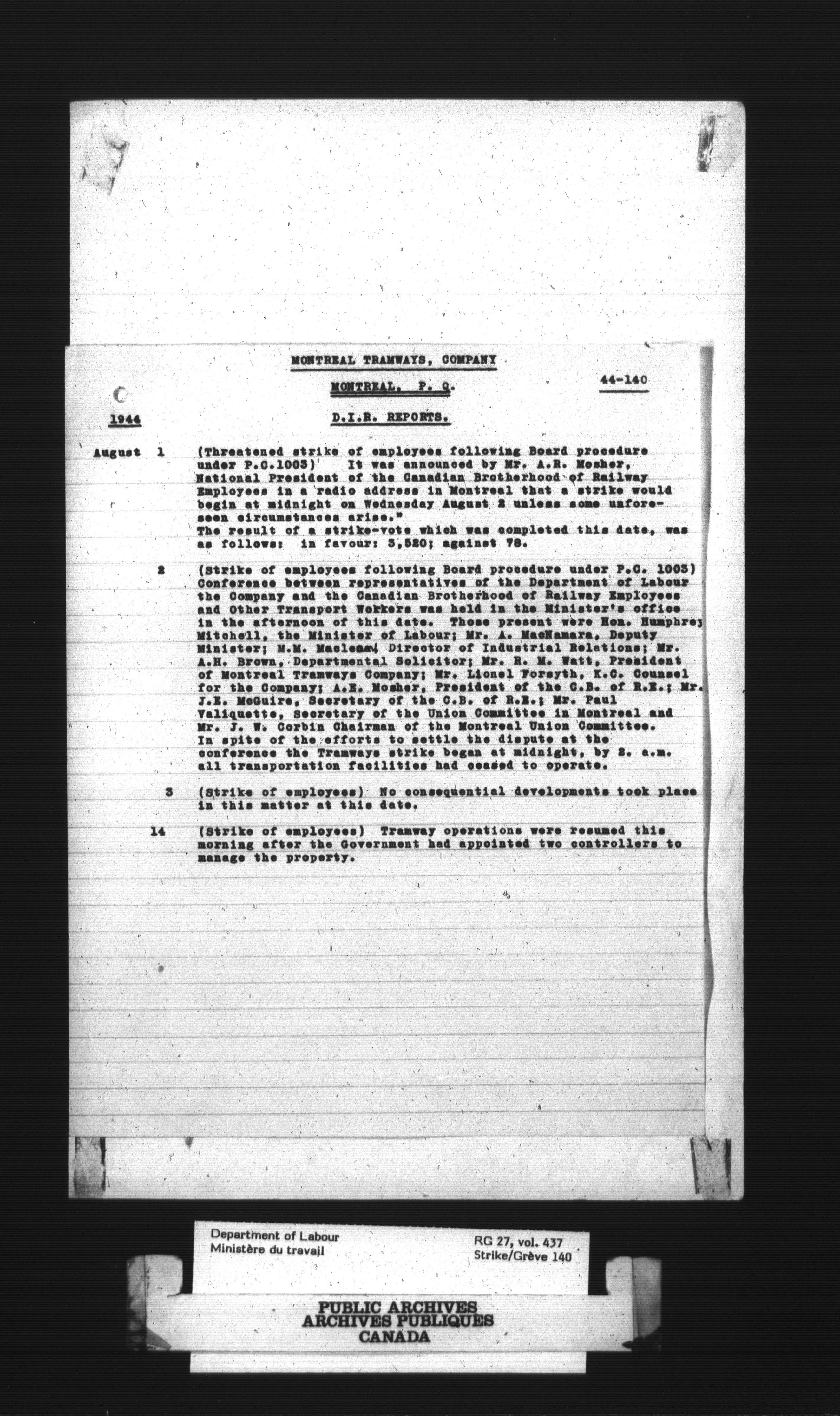 Department of Labour, Economics and Research Branch : Strikes and lockout files - 4070