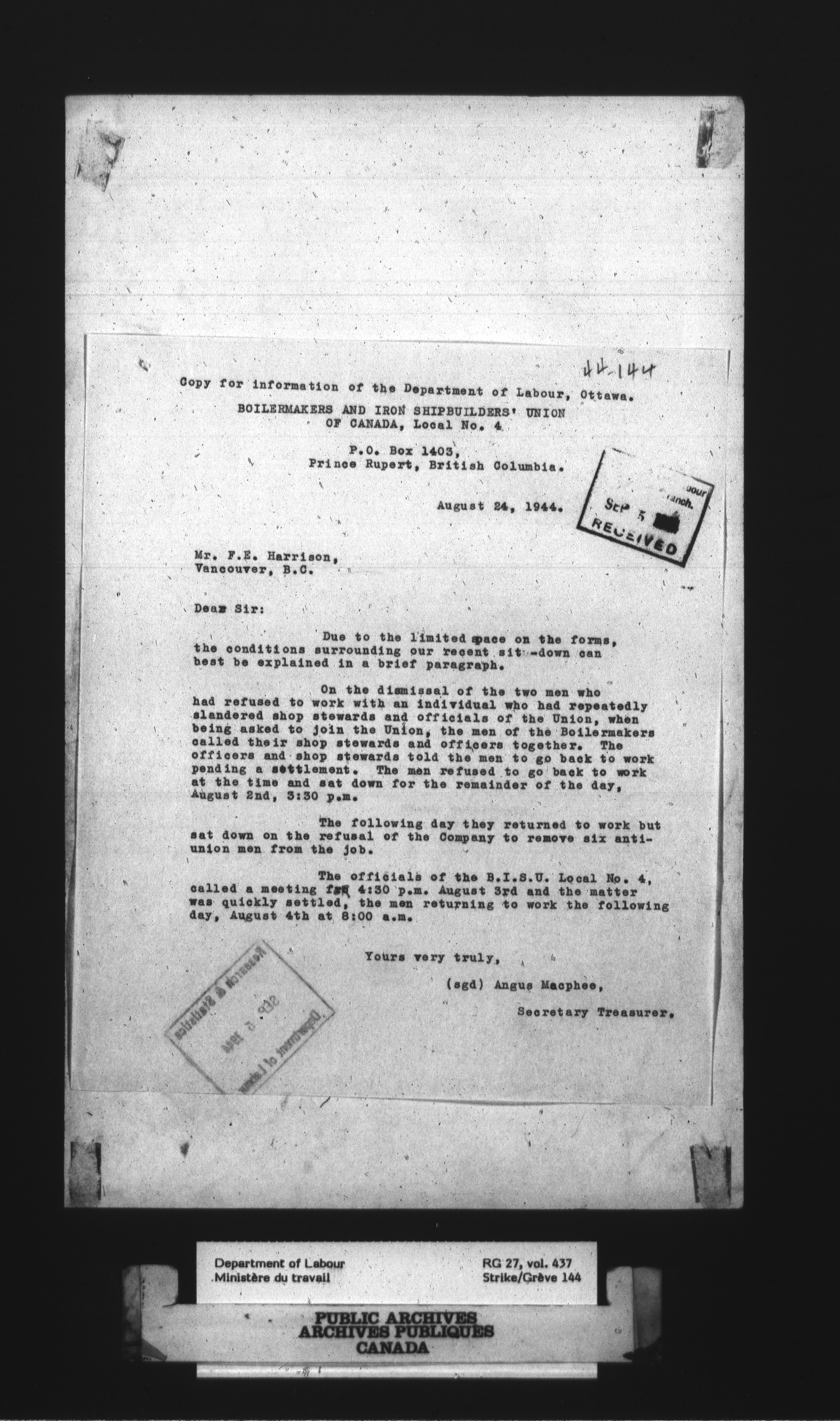 Department of Labour, Economics and Research Branch : Strikes and lockout files - 4070